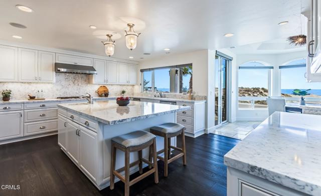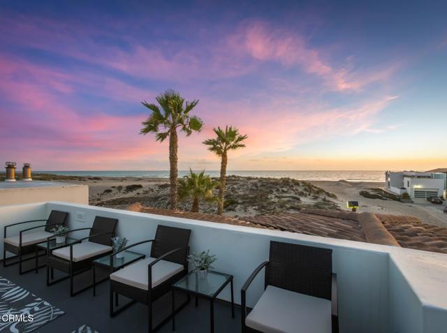 Unparalleled Oceanfront Luxury in Mandalay ShoresBreathtaking ocean views from every level define this extraordinary coastal retreat, featuring a rare 500 sq-ft rooftop deck with a 360-degree panoramic vistas. Nestled in the heart of Mandalay Shores, this stunning custom home was masterfully crafted in 2006 by renowned Ventura County builder Jim Sandefer, known for his superior craftsmanship, attention to detail, and seamless integration of indoor-outdoor living.Boasting 62 feet of ocean frontage--one of the largest in the Shores--this estate sits on an expansive 6,486 sq-ft lot with approximately 50 feet of width, offering an unparalleled sense of space and exclusivity. With five decks, patios, and balconies spanning nearly 2,000 sq-ft, this home is an entertainer's paradise.Step inside to a grand entryway with soaring vaulted ceilings and a dramatic staircase. The primary suite is a sanctuary, featuring a massive custom-built closet with a center island, a private sauna, and an ocean-view retreat. Two additional bedrooms and bathrooms complete this level.The second floor unveils an open-concept living space where a stunning ocean-view living room with a fireplace and wet bar flows effortlessly into a spacious dining room with a romantic balcony. The chef's kitchen is a masterpiece, showcasing a huge island, custom cabinetry, and an oversized pantry. A family room/den and two expansive en-suite bedrooms with private balconies complete this level.Additional features include a three-level elevator, climate-controlled wine room, a 600+ sq-ft three-car garage, solar panels, and a retractable deck awning.Situated near the luxurious 4-star Zachari Dunes Resort, pristine Ololkou Beach Park, scenic oceanfront paths, Channel Islands Harbor, and exceptional dining, this coastal masterpiece is the ultimate sanctuary for living in perfect harmony with the ocean.Welcome home to your dream oceanfront escape.Interested in this Listing?