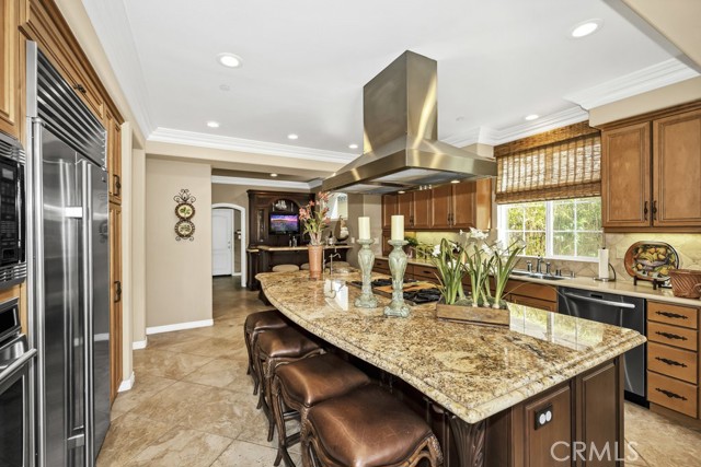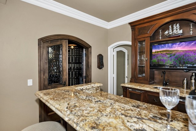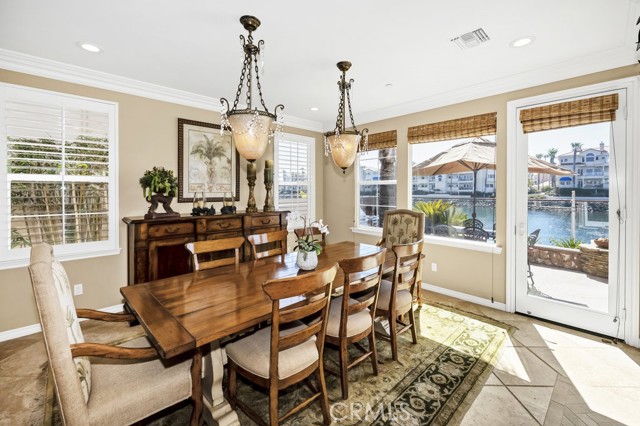 This stunning Waterfront Home fully furnished in Westport at Mandalay Bay is the epitome of sophistication and boasts four bedrooms, three and a half bathrooms, plus library/office and 3,440 sq. ft. of luxurious living space. Enter through custom iron gate into a tranquil courtyard with fountain, setting the stage for the homes south-facing, unobstructed harbor view. Upon entering, you're greeted by a spacious foyer with an open floor plan that seamlessly connects the main living area along with the elevator that makes accessing both levels of the home effortlessly. The main living area is designed for entertaining, featuring a gourmet kitchen, large granite island along with top-of-the-line stainless steel appliances such as the Wolf Range/Oven, Sub-Zero Refrigerator, dishwasher, trash compactor, microwave and an additional built-in oven. The adjoining dining area with fireplace leads directly to the backyard overlooking the marina and 45' boat dock. For the wine enthusiast enter through the double wood and iron doors that is exquisitely crafted as you enter the refrigerated wine cellar/tasting room that holds more that 800 bottle of wine. Another appointment is the elegant granite top wet bar with wood and glass display cabinets, built-in television, refrigerator, ice maker and sink. The living room with soaring ceiling, fireplace, custom built-in cabinetry and French doors leads to the yard and harbor view. The primary suite offers stunning views of the harbor and features a built-in coffee and wet snack bar, automated window treatments, and a custom TV cabinet. The spa-like bathroom includes a freestanding soaking copper tub, a spacious walk-in shower, dual glass vanities and an expansive closet with customized cabinetry. The other three bedrooms have been thoughtfully upgraded and having one of these bedrooms as a secondary primary with an en-suite bath. The property's outdoor area is equally impressive with stamped concrete, raised seating and planters complete with barbecue, cooktop, sink, firepit table and a serene water feature. There are so many additional features as a 45' boat dock, shutters, motorized window treatment, crown molding, designer light fixtures, ceiling fans, dual A/C, custom closet organizer's built in televisions/audio system, laundry room includes washer & dryer, 2 car garage has epoxy floor and built-in storage cabinets/work bench, additional refrigerator/freezer hanging storage racks, & soft water system and so much more.Interested in this Listing?