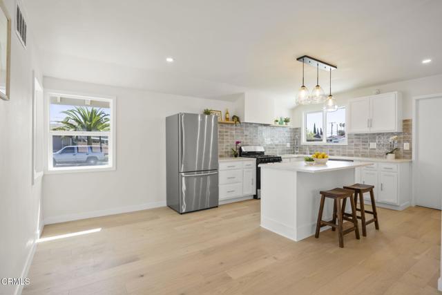 Complete redesign & renovation into a Contemporary Coastal style home, with all the allure of brand-new construction. Bright & sunny open concept layout unites kitchen, dining & living rooms. Entirely new kitchen features quartz like counters, tile backsplash, custom cabinetry & a new center island with bar seating & pendant lighting, as well as new stainless-steel appliances. LR has a wood burning FP & glass doors opening onto the fully fenced backyard.Both primary & hall baths are fully remodeled with new slate tile surround, Rainfall shower heads, new vanities, flooring & state of the art lighting.New landscaping with ornamental grasses & exterior Borneo mahogany wood siding flank the attached 2 car garage with a rear, roll up door. New double paned windows, vinyl plank flooring, garage door with silent model Lift Master motor, & Hampton Bay lighting are some of the many additional modernizations.The neighborhood boasts wide, tree-lined streets & obvious pride of ownership. Oxnard State Beach, Channel Islands Harbor & The Collection at Riverpark are nearby. This home wraps modern coastal style in a big, family-friendly embrace.Interested in this Listing?