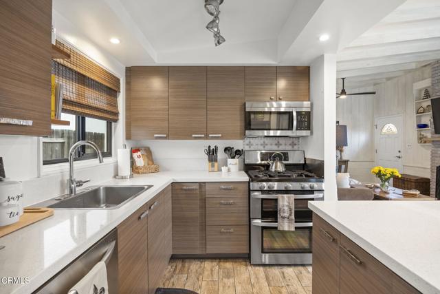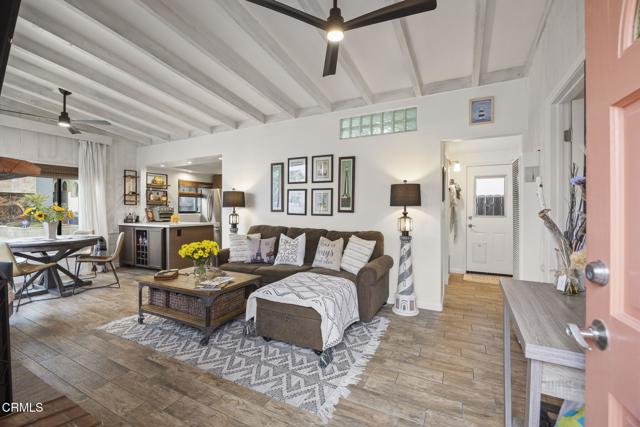 VIEWS, VIEWS, VIEWS! Welcome home to The Lighthouse at Hollywood Beach, a spectacular well-known coastal cottage, perfectly positioned to capture breathtaking permanent ocean and Channel Islands views. From the moment you enter, you're greeted by a large front picture window that frames the sparkling blue horizon. This rare gem features high beamed ceilings and offers panoramic vistas from the kitchen, dining area, and family room. Inside, thoughtful upgrades include added kitchen storage, and whitewash finish in the living room, newer windows, custom wood blinds, linen drapes, and charming coastal details throughout. The remodeled kitchen features quartz countertops, stainless steel appliances, custom cabinetry, and a double oven is perfect for creating seaside meals. Cozy up by the wood-burning fireplace with its unique driftwood mantle, or enjoy the wood-look tile flooring that enhances the beachy feel and ease of maintenance. The large elevated front deck invites you to relax with a glass of wine and soak in the stunning views and lush tropical landscaping, while the fenced backyard offers plenty of space for entertaining. With 2 bedrooms, an updated bathroom, and an attached one-car garage, this home is both stylish and functional. Ideally located just steps to the sand and half a block from the harbor, you'll love being near local restaurants, the Farmers Market, concerts in the park, and more. Nestled in the heart of Hollywood Beach, just north of Malibu and south of Santa Barbara at last, this is the coastal escape you've been waiting for!Interested in this Listing?