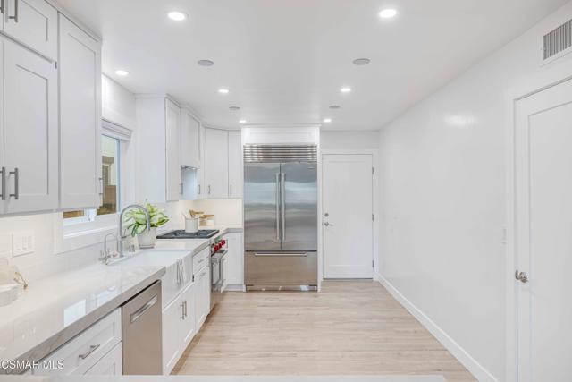 Welcome to the ultimate in beachside living at 5113 Whitecap Way--just moments from the sand in the highly sought-after Oxnard Shores community. This fully remodeled 3-bedroom, 3.5-bath coastal retreat has been thoughtfully transformed with luxurious finishes, timeless design, and all the modern upgrades you could ask for.The spacious primary suite is located on the main level, offering a beautifully renovated ensuite bathroom and ultimate privacy. Upstairs, two additional bedrooms each feature their own ensuite bathrooms, perfect for family, guests, or a dedicated home office. One of the upstairs bedrooms opens to an expansive private deck through a dramatic oversized slider--an ideal space to relax under the sun or entertain beneath the stars.Inside, the home boasts stunning engineered wood flooring throughout, smooth new natural plaster walls, recessed LED lighting with dimmer switches, and custom window shades on every window. The heart of the home is the open-concept great room and dining area, centered around a striking marble fireplace with an automatic switch for effortless comfort. The remodeled kitchen is truly a chef's dream, featuring natural honed quartzite countertops, all-new custom cabinetry, a top-of-the-line Wolf range, Sub-Zero refrigerator, farmhouse-style sink, and a stylish mini bar with a wine fridge and accent lighting. The home is also wired for whole-house audio, creating the perfect environment for entertaining or relaxing.Every detail has been considered, including all new windows and sliders, a brand-new heating and air conditioning system, and built-in closet systems in every bedroom, complete with quartz-topped dressers and shelving. Outdoors, enjoy low-maintenance landscaping illuminated with Malibu lighting and additional accent lights, a cozy firepit, a new concrete driveway with elegant pavers, and direct access to an oversized garage with an epoxied floor. There's also convenient RV parking on one side and two-car parking on the other, along with a dedicated laundry area that includes full hookups and a utility sink. The home is even pre-wired for outdoor security cameras, offering peace of mind along with unparalleled style.From the new roof to the freshly painted interior and exterior, this home has been completely refreshed and reimagined with no detail overlooked. Whether you're looking for a permanent coastal haven or the ultimate weekend escape, 5113 Whitecap Way offers the very best of California beach living--effortless, elegant, and just steps from the shore.Interested in this Listing?