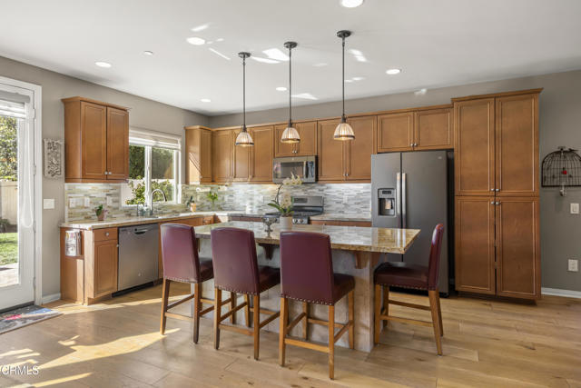 Situated at the back of the vibrant Riverpark community, this beautifully upgraded home offers 4 bedrooms, 3 bathrooms, and just under 1,900 sq. ft. of living space.The main level flows effortlessly with hardwood flooring, custom built-ins, and an open-concept design. The kitchen is warm and inviting, featuring granite counters, a spacious island with bar seating, accent lighting, and stainless steel appliances. A full bath and a flexible 4th bedroom/office complete the downstairs. Upstairs, the bright and spacious primary suite boasts a walk-in closet and an en-suite bath with dual sinks, a soaking tub, and a walk-in shower. Two additional bedrooms, an upstairs laundry room, and thoughtful upgrades like a whole-house soft water system and hot/cold reverse osmosis in the kitchen add extra convenience. The backyard is designed for entertaining, with a paver patio, elevated seating area, pergola courtyard, and a built-in outdoor fireplace + fruit trees for a magical experience. Living in Riverpark means you're just steps from parks, trails, and sports courts, with The Collection right around the corner--offering Whole Foods, Target, theaters, dining, entertainment, and still moments to Surfers Point. With easy 101 access, this home offers the ultimate blend of comfort, convenience, and lifestyle.Interested in this Listing?