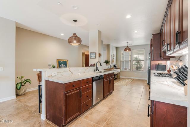 Premium waterfront view and location! Welcome to paradise located on the island at Seabridge inside one of the most beautiful harbors in Socal and just down the way from one of the most beautiful stretches of beach in Ventura County. We are located next to Channel Islands Harbor, gateway to the Channel Islands National Park & half way between Malibu & Santa Barbara. Your world will be filled with playing in the waves, kayaking, boating, paddle boarding, visits to local yacht clubs, wineries, golfing, shopping & restaurants. Dazzling Waterfront view luxury condo at Port Marluna in Seabridge located next to Channel Islands Harbor. This stylish single level will not disappoint w/ high end details, TONS of upgrades & harbor views. Area offers resort style living & amenities such as large fitness center, over sized pool/spa, picnic area, dining/club-party hall, outdoor fire table, lounging/party area for guests on the waterfront as well as a walking trail along the waterfront with fitness stations. This unit is only one of few that offer a wide open south facing water view. This spectacular home features A/C, designer flooring, marble counter tops in the kitchen, upgraded marble back splash, tons of top of the line cabinetry w/upper & lower cabinet lighting, stainless steel appliance package, huge marble island w/ bar seating, high ceilings, designer, light fixtures, blinds throughout, gorgeous instant gas fireplace, laundry room w/storage, guest suite w/ separate bathroom, master suite features his & her sinks, stone counter tops, grand soaking tub & walk in shower with seamless glass & marina view. The Seabridge development also offers convenient amenities, such as shopping, dining, beauty, salons, and more all within walking distance along the water. Don't miss your chance to live the dream. Come for a day, stay for a lifetime!