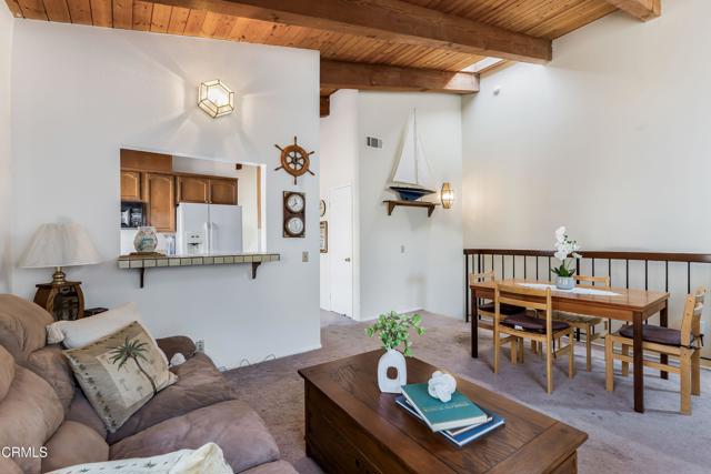 Wake up in Paradise! Discover this charming beach condo just steps away from the beautiful sandy beach at Mandalay Shores and just minutes away from the Channel Islands Harbor. Offering 1,374 sq. ft. of comfortable living space with 2 spacious bedrooms enough to accommodate a King-sized bed and furniture, 2 full baths, and a den that can be converted to a 3rd bedroom. The main floor features a spacious master bedroom with mirrored closet doors, an additional closet for extra storage, and a full bathroom complete with a relaxing tub. The conveniently located laundry room is just steps away along with an attached 2 car garage.Upstairs, the carpeted living and dining area boasts tall windows that fill the space with natural light and a stunning brick fireplace for cozy evenings. The kitchen, with its light wood cabinetry, white tile countertops, and breakfast bar, offers a perfect blend of style and functionality. Down the hall, a versatile family area opens to a private balcony, creating a serene spot for relaxation. Adjacent is the second bedroom, which impresses with tall ceilings, a corner window that stretches to the ceiling, and ample closet space. A second full bath is conveniently located in the hallway. Vaulted ceilings throughout the family room, den, and upstairs bedrooms are adorned with beautiful wooden beams, adding a touch of warmth and character to the design. This property is a perfect retreat, combining beachside living with comfort and charm. Close to parks, shopping centers, and much more! Don't miss the opportunity to call this gem your home!Interested in this Listing?