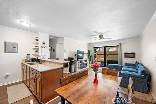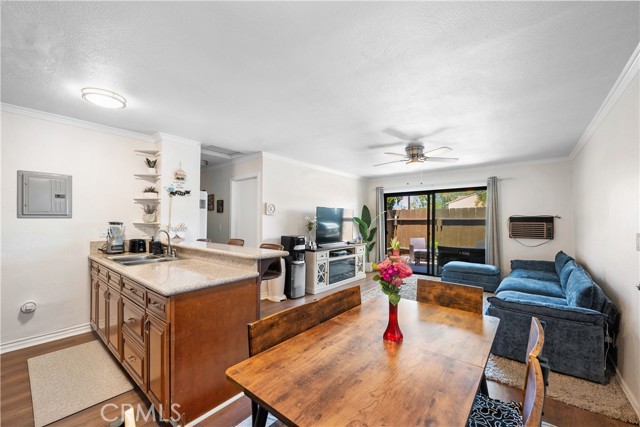 Welcome to this beautiful, fully furnished 2-bedroom, 1-bath condo located on the lower level, offering easy access and comfortable single-level living. The home is in excellent condition and has been very well maintained, making it truly move-in ready. Inside, you ll find a bright and welcoming interior with clean finishes and thoughtful touches throughout. The kitchen features granite countertops and quality cabinetry, while crown molding and updated baseboards add a touch of elegance. The bathroom is well-appointed with a modern vanity, mirror, and a clean shower/tub enclosure. Both bedrooms offer ceiling fans with built-in lighting, and there's an additional ceiling fan in the living room. A private patio with an exterior gate provides the perfect spot to relax or entertain outdoors. Additional features include an attached one-car garage, a dedicated carport space, and a community laundry room conveniently located next to the unit directly. With low monthly HOA fees and a well-kept interior, this condo offers a great blend of comfort, convenience, and value.Interested in this Listing?