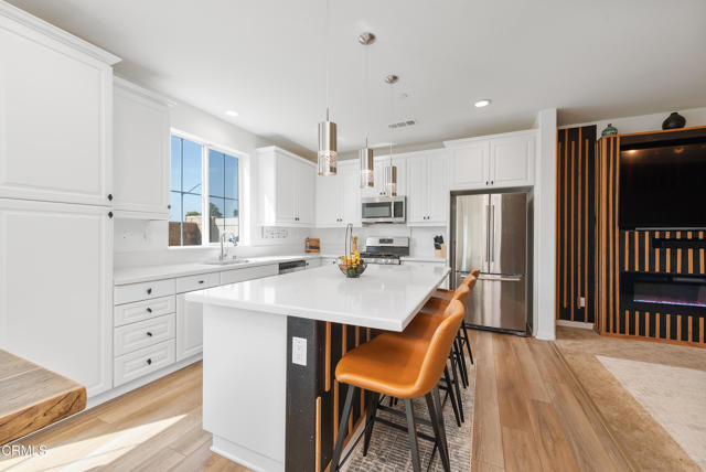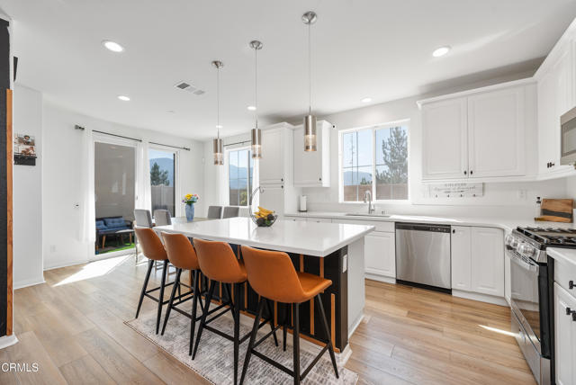 LOCATION, LOCATION, LOCATION! No neighbors behind you on this stunning and highly upgraded home in Harvest at Limoneira with amazing views! Built in 2023, this move-in-ready gem offers 3 bedrooms, a spacious loft, and 3 bathrooms in an open-concept layout. The first floor features high ceilings, recessed lighting, and a seamless flow between the living area with a custom entertainment center with fireplace, dining space, and a gorgeous kitchen with upgraded quartz countertops, backsplash, huge island, stainless-steel appliances, built-in oven and microwave, and pantry. Upstairs, the versatile loft is perfect as a media room, office, or play area. The luxurious primary suite boasts a custom built-in organizer in the walk-in closet, double vanities, and a spa-like shower. Two additional sunlit bedrooms share a spacious full bath, while the laundry room offers ample storage. Energy-efficient features include lease solar with a low payment of only $75/mo, dual-zone A/C & heating, and a tankless water heater. Step outside to a beautifully designed, low-maintenance backyard with pavers and turf, ideal for outdoor dining and relaxation. Custom window shades add a stylish touch throughout. Enjoy resort-style amenities, including a pool, spa, fitness center, yoga room, sports fields, dog park, playgrounds, BBQ areas, a community garden, and scenic hiking trails. Just 30 minutes from the beach, 30 minutes to Ojai, and 45 minutes to Santa Clarita Valley--don't miss this incredible opportunity!Interested in this Listing?