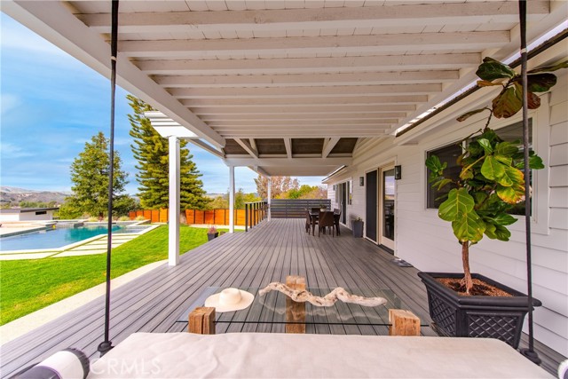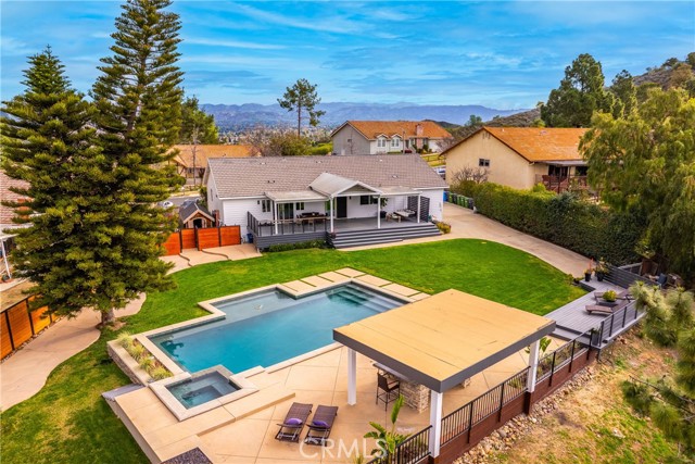 THIS PROPERTY IS SPECIAL! 1.47 Acres of spectacular mountain views and privacy located in the Bridle Path Equestrian neighborhood of west Simi Valley. This pristine lot has a newly improved road leading to a level graded pad approx. 50 x100 awaiting your personalization that can be used for your future barn with ample room for turnouts, a workshop, or heavy equipment parking/storage, or ?. Additionally, there is a paved, gated RV access approx. 97 Long x14' wide. The backyard boasts the most amazing mountain views and the expansive park-like yard boasts a large pool and spa and is the spot for true relaxation and entertaining. There is plenty of space for your own vegetable garden or chicken coops! Enjoy morning coffee and all the sunset views from the covered Trex deck off the kitchen/dining and primary bedroom suite. Additional viewing areas on the rear Trex decks offers another covered patio over the bar seating area, and a fully enclosed pool equipment house and storage room. Enjoy peace of mind knowing ALL the costly renovations are done! NEW items include: Tile Roof, HVAC unit and ducting, a tankless water heater, aluminum framed insulated glass windows. There are all new interior doors, mouldings, flooring, light fixtures, electrical outlets. The kitchen remodel includes tons of storage, quartz counters, stainless farm sink, Grohe fixture, Bosch dishwasher, Dacor 6-burner gas cooktop. The kitchen island includes gracious under counter storage, roomy bar seating, Wolf oven and a Sharp Microwave drawer. Exterior renovations include a covered patio entry, contemporary overhead garage door, fire resistant cement fiber Hardi-Plank Siding, a FULLY finished 35' deep bay garage (which can easily be converted to a 5th bedroom and 3rd bathroom). There is generous storage in the attic with pull down ladder access. The low HOA fee includes the most amazing HOA private ownership of a 1700 Acre Mountain Park with multiple horse arenas and miles and miles of private horse/hiking trails . This beauty is one home not to miss! Disclosure-Listing Agent is property owner.Interested in this Listing?
