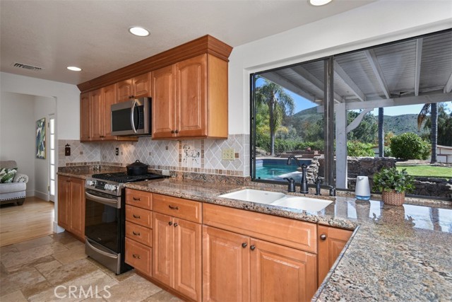 Stunning Horse Property in Simi Valley s Premier Equestrian Community Bridle Path is one of Simi Valley s most sought-after equestrian communities. This immaculate and updated split level home spans 2,045 square feet, high ceilings and sits on a half acre lot.With direct access to scenic riding paths and hiking trails here lies a perfect blend of country charm and modern amenities. This 4-bedroom 2-bathroom home is functional and gorgeous. As you enter, you ll be greeted with brand new hardwood floors that flow seamlessly throughout the open and inviting floor plan. The updated recessed lighting enhances the home s natural beauty, creating a fresh and modern feel. The expansive family room features vaulted ceilings and a cozy fireplace, making it perfect for entertaining. The chef s kitchen is a true highlight, boasting granite countertops, quality cabinetry, stainless steel appliances and ample storage, ideal for cooking and gatherings. The primary suite is a retreat of its own, featuring an en-suite bathroom with premium touches such as granite countertops and a luxurious soaking tub. Additionally, the suite has french sliders to the backyard with direct access to the stunning backyard, offering a gorgeous view of the hills. Three additional spacious bedrooms provide plenty of space for family and guests. All of the bedrooms are outfitted with premium woolen carpet, soft and luxurious to the touch. Outside, the property truly shines as a horse lover s paradise. Complete with two barns, and a small pasture, the land is perfectly suited for equestrian enthusiasts. The backyard also features a spectacular pool and spa, lots of room for gardening projects and space for RV and horse trailers. Whether you want to build a sport court, start your own fruit farm, or simply chill out in your expansive outdoor living space, this property offers endless possibilities. This home is not only designed for comfort but also for peace of mind, with a new roof, plumbing, hot water tank systems that were recently installed. The property also includes a 2-car garage, upgraded insulation and HVAC, and oversized air ducts for year-round comfort. This rare home is on the market for the first time, its in a safe and serene community, a horse property that offers the perfect blend of space, and adventure! Don t miss out on this amazing property schedule your tour today!Interested in this Listing?