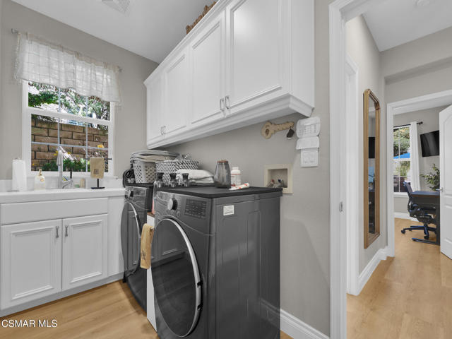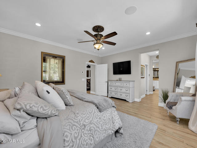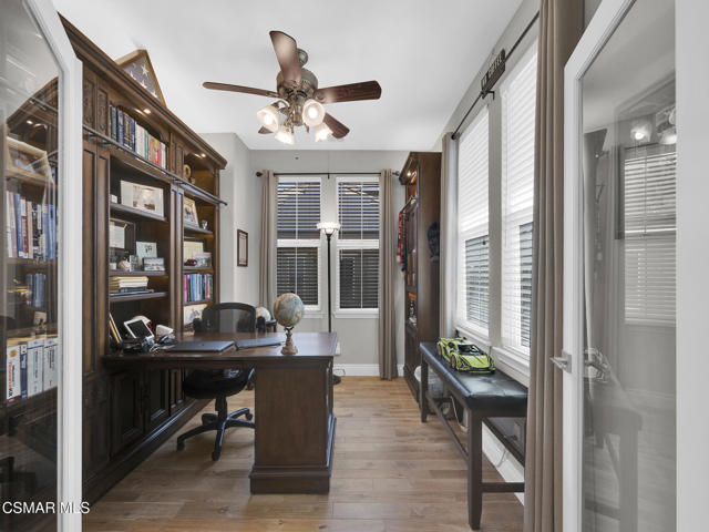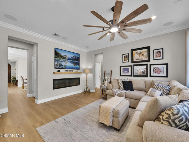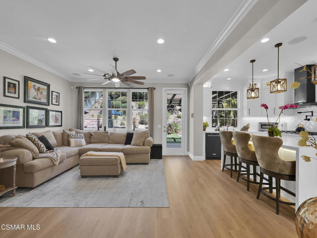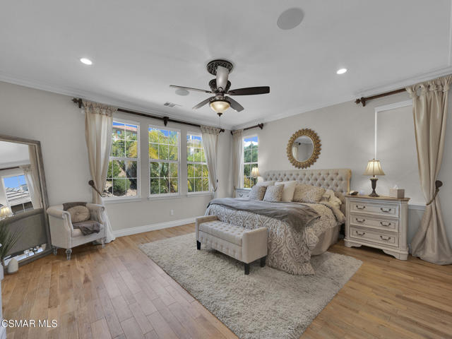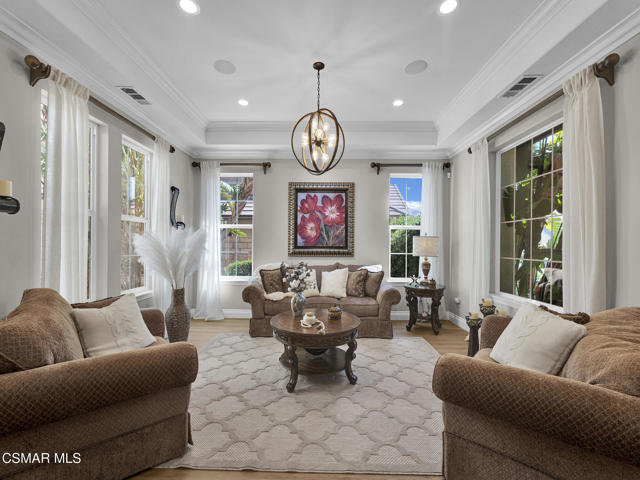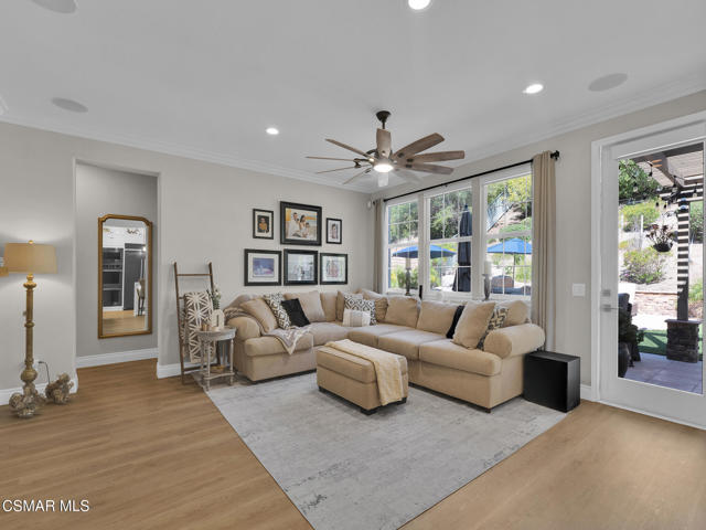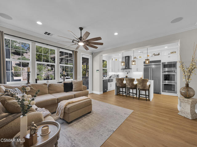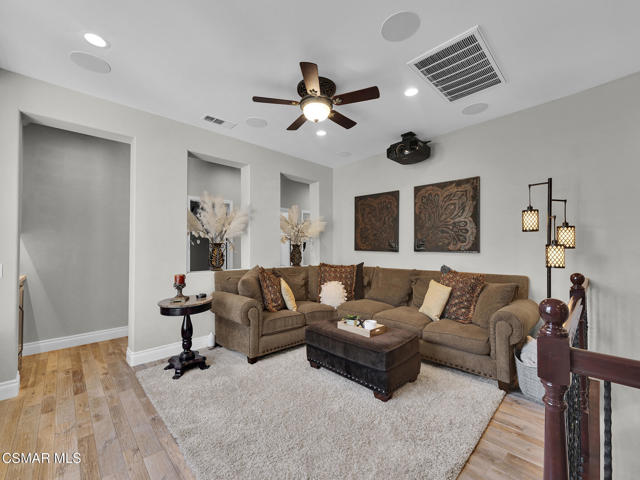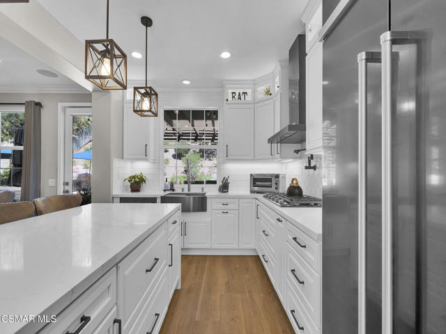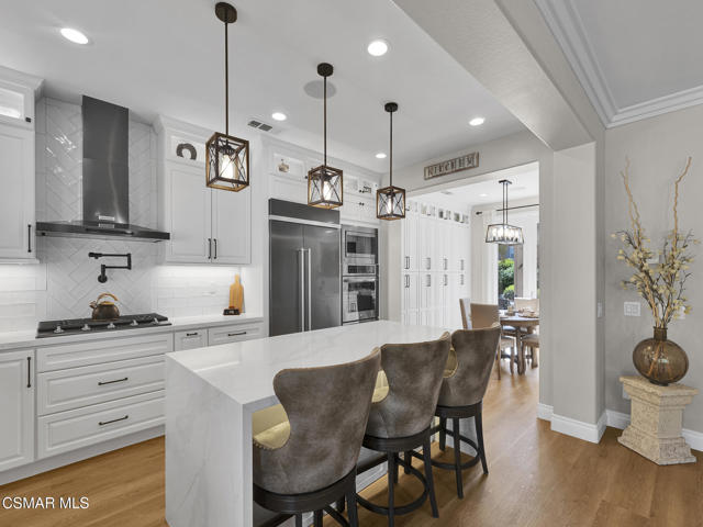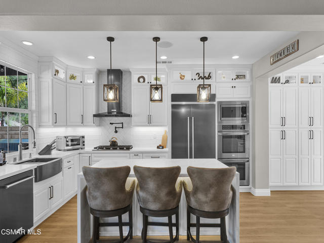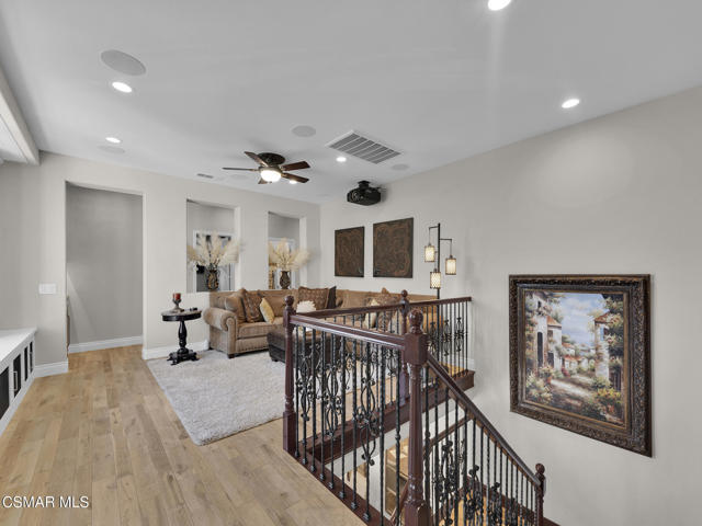 **Luxury, Technology, and Elegance Combined - Your Dream Home in the Hills of Simi Valley**Welcome to this stunningly upgraded 5-bedroom + office, 4-bathroom masterpiece offering 3,712 sq ft of sophisticated living space on a nearly 10,000 sq ft lot. Designed for comfort and style, the pristine kitchen--remodeled just 6 months ago--boasts designer quartz countertops, custom tile work, high-end lighting, a convenient kettle faucet, and stainless steel appliances, all overlooking the beautifully landscaped backyard. The main level includes a spacious bedroom and full bathroom, perfect for guests or multi-generational living.Step inside to find premium designer luxury vinyl plank flooring and hardwood upstairs, adding warmth and richness throughout. The serene primary suite is your private retreat, complete with picturesque views, an organized walk-in closet, oversized dual vanities, and a spa-inspired soaking tub. Movie nights will never be the same in your upstairs loft-turned-Sony 4K home theater, featuring a motorized projector screen, immersive lighting, and state of the art sound system--all controlled at the push of a button.A true tech-lover's paradise, this home features over $400,000 in professionally installed Control4 smart home automation--customizing everything from climate control and lighting to the 16-camera security system, theater room, outdoor fire pit, spa, fountain, and more. Entertain effortlessly outdoors with a built-in kitchen, a luxurious spa with waterfall grotto, and expansive space to relax or gather.Additional highlights include a central vacuum system, built-in wine refrigeration, full indoor laundry, and a tandem 3-car garage with abundant storage. This is more than a home--it's a lifestyle. Don't miss your chance to own this rare gem overlooking the scenic hills of Simi Valley.Interested in this Listing?