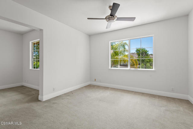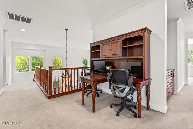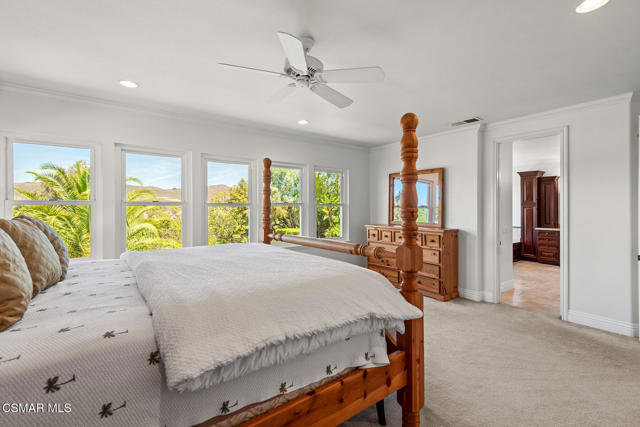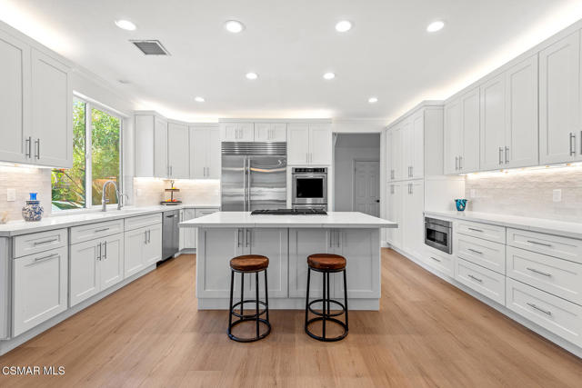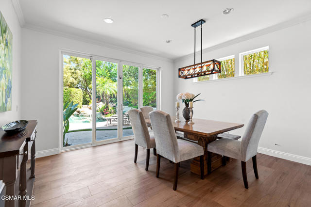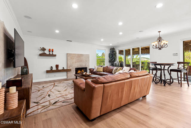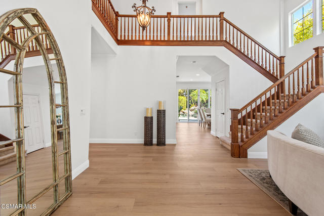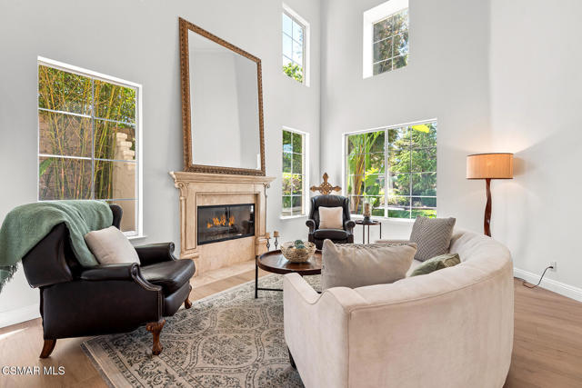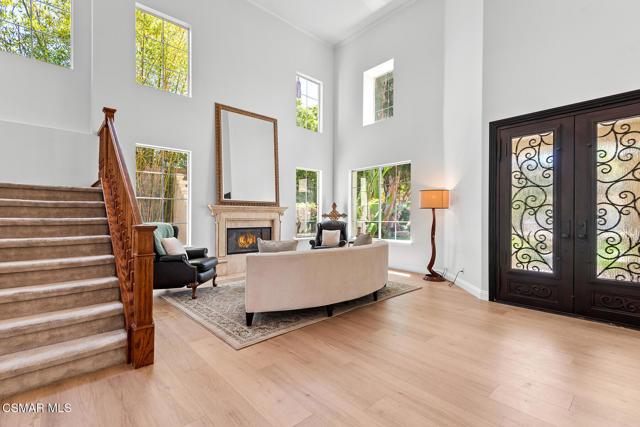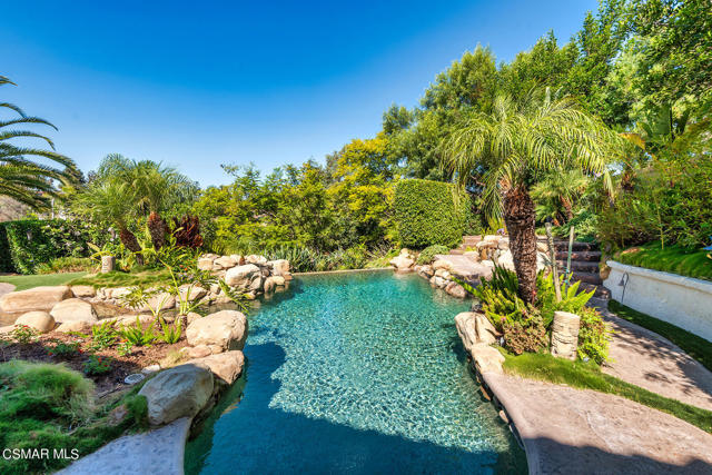 Welcome to the best of Wood Ranch! Situated in the Legacy Collection, this stunning corner lot offers views of the golf course and unparalleled privacy within a gated community. The entertainer's dream backyard features a pebble tech pool and spa with a beach entry and infinity edge, complemented by a waterfall and cozy fire pit. The expansive stamped concrete patio, along with a spacious side yard and a lower yard can accommodate a half sport court or trampoline and is filled with fruit trees, ensures plenty of outdoor space for relaxation and gatherings.Inside, the 6 bedroom, 5.5 bath home features a gorgeous new gourmet kitchen that is a chef's delight, highlighting custom cabinets, stone countertops, and top-of-the-line stainless steel appliances, including a built-in refrigerator and wine cooler. The large island with a breakfast bar create a warm and inviting atmosphere.The primary suite is a true retreat, offering stunning views, crown moldings, a walk-in closet, and a luxurious bath featuring dark wood cabinets, dual sinks with a vanity, a jetted tub, and a separate shower with a frameless glass door--all finished in travertine. Additionally there are four bedrooms upstairs; one with a desirable study retreat. Private ensuite downstairs. Each bathroom has been thoughtfully updated, ensuring modern comfort throughout.With too many upgrades to mention, this home is a must-see! Come experience the perfect blend of luxury, comfort, and entertaining potential in Wood Ranch.Interested in this Listing?