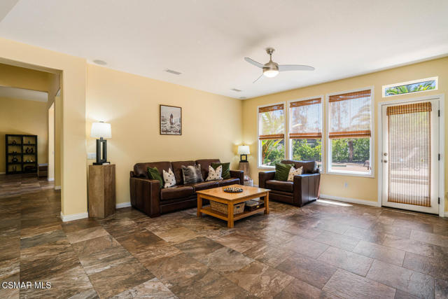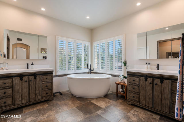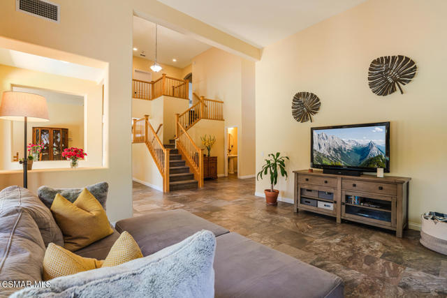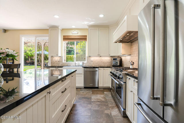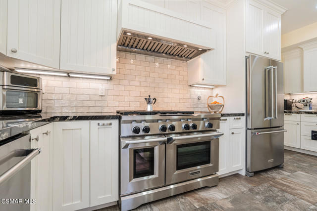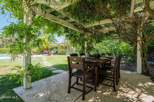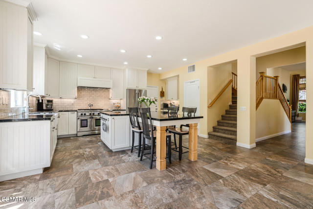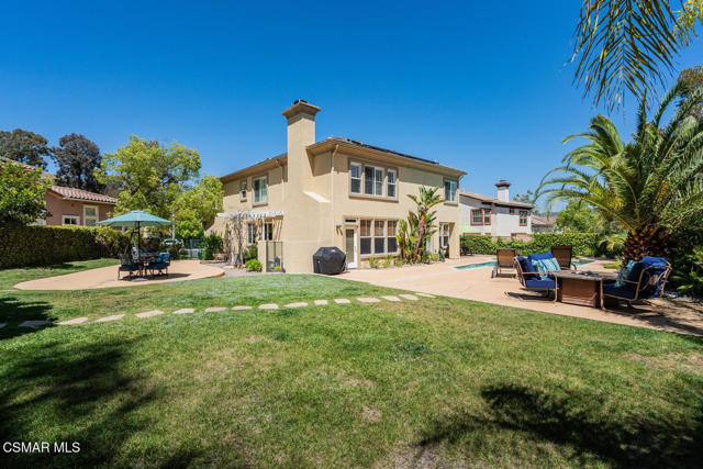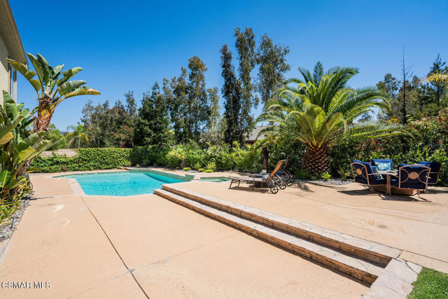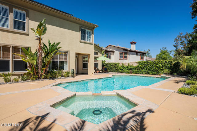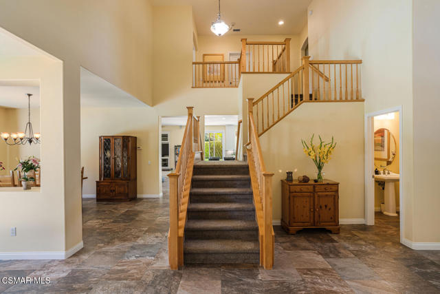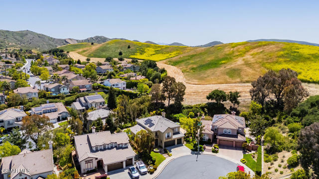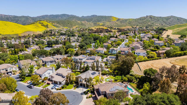 Spectacular two story pool home in guard gated community in Wood Ranch. This 5 bedroom, 4.5 bathroom home features a bedroom and bathroom on the main level, which is ideal for a mother in law suite, office or guest room. Immediately entering the foyer with its natural sunlight gives you a sense of elegance and sparks your curiosity. Formal living and dining rooms make it ideal for your holiday entertaining or family gatherings. Double staircase allows to enter from either the foyer or the kitchen. Elegant gourmet kitchen with oversized island, niche for a beverage bar, farmhouse style sink and lots of space to prepare meals on a beautiful range that any cook would love. Custom kitchen cabinetry, walk in pantry and outfitted with stainless steel Kitchen-aid appliances. The kitchen opens to the family room with a fireplace, built in niche and a door that leads to the stunning backyard. Custom draperies and blinds make this home warm and comfortable. Luxurious primary bedroom boasts a stunning upgraded bathroom and walk-in closets. Upstairs laundry room is upgraded and super convenient, located adjacent to the secondary bedrooms. The joining bathroom between two of the secondary bedrooms is beautifully upgraded. Bedroom four upstairs has its own upgraded bathroom. Expansive private and peaceful lot includes pool and spa with a scenic view backing open space with lush landscaping. Beautiful gazebo with incredible a mature wisteria creates this ethereal and elegant area, ideal for entertaining. This yard is truly magical. This property has a 3 car garage and located in a cul-de-sac. This home has it all with no expense spared.Interested in this Listing?
