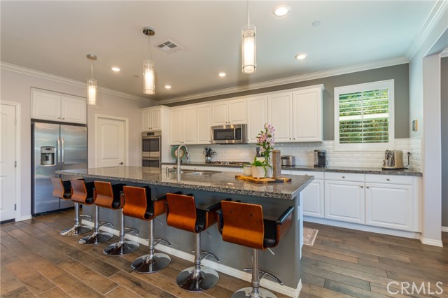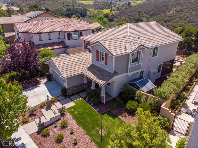 VIEW! VIEWS! VIEWS! Step into luxury with this stunning 4-bedroom, 3-bath newer-construction single-family home located in one of Simi Valley s most sought-after neighborhoods - The Woodlands. Set against the backdrop of the breathtaking surrounding hills, this home offers the perfect blend of modern comfort and serene living. Enjoy an expansive open floor plan featuring a gourmet chef s kitchen with a HUGE granite island, tasteful backsplash, stainless steel appliances, and a massive walk-in pantry perfect for entertaining. The vast living room, formal dining area, covered patio, and cozy fire pit create an ideal setting for hosting friends and family. Retreat to the luxurious primary suite with double walk-in closets, dual sinks with a dedicated vanity area, and stunning views of the hills. All bathrooms have been beautifully upgraded with premium finishes. Enjoy the fantastic spacious high-ceiling bedrooms, perfect for any use! Upstairs, you'll also find a convenient laundry room with an oversized linen closet. This home is loaded with upgrades, including paid-off solar, tankless water heater, dual paned windows and sliders throughout, plantation window shutters, underground sprinkler system, gas piping installed in rear yard for possible outdoor kitchen, smart home technology, and tons of garage storage. The 2-car garage pre-wired for a car charger, incredible curb appeal, and low-maintenance landscaping make this property both functional and beautiful. Located in a community that offers scenic hiking trails, parks, and walkways, while being just minutes from local shopping, dining, and top-rated schools. With reasonable HOA fees, this home truly checks every box. Don t miss your chance to own this exceptional home schedule a private tour today!Interested in this Listing?