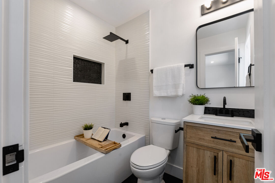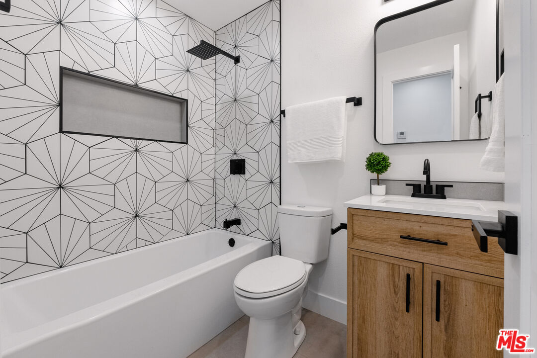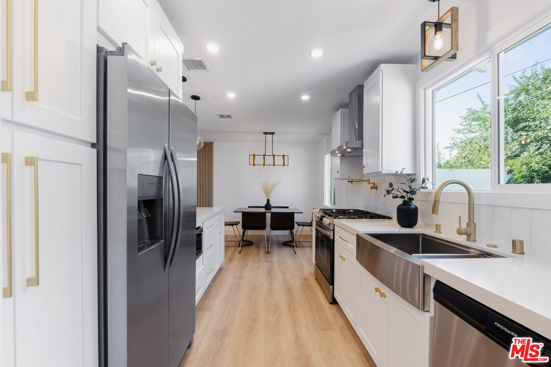 STOP YOUR HOME SEARCH! MUST SEE! A head to toe, FULLY REMODELED home featuring 3 bedrooms and 2 bathrooms. The remodel is permitted through the City of Simi Valley Building and Safety, passing ALL inspections and is fully sealed with permits. The permits of the remodel includes all big ticket items but are not limited to: NEW ROOF, NEW ELECTRICAL, NEW MECHANICAL, NEW PLUMBING, NEW WATER HEATER, newer HVAC system, and the replacement of 50 linear feet of sewer lateral. As you enter through your brand new driveway, to view your beautiful new landscaping and exterior paint, you'll be greeted with an elegantly modern front door that will be a showstopper of a first impression for your guests. Step into your dream home to find a brand new and custom electric fireplace, surrounded by a modern and elegant wood feature wall to sit around while hosting intimate gatherings for your family and friends. Enjoy your new recessed lighting, illuminating your new white-oak style luxury vinyl flooring. This newly designed layout provides the ultimate open concept, flowing directly from the family room to the dining area, featuring a new modern style chandelier, with a view to your spacious backyard. Moving into your brand new kitchen, you'll find all new stainless steel appliances, a beautiful new backsplash, luxurious gold accents, shaker cabinets providing ample storage, and custom quartz countertops, showing off a beautiful waterfall feature with barstool seating. Convenience is key with your custom in-house laundry room, featuring brand new cabinets, topped with beautiful quartz countertops, a stainless steel deep sink, a floating shelf, and an all new LG smart washer and dryer. As you enter the hallway you'll see your first of two custom designed bathrooms, a hall closet for storage, and your 3 bedrooms, with the primary suite featuring its own oasis of a bathroom. Last but not least, this house comes with an expansive backyard, including a built-in barbecue, perfect for family life or entertaining. With the peace of mind in having all the big to little ticket items taken care of, sit back and enjoy your showstopper of a new home.