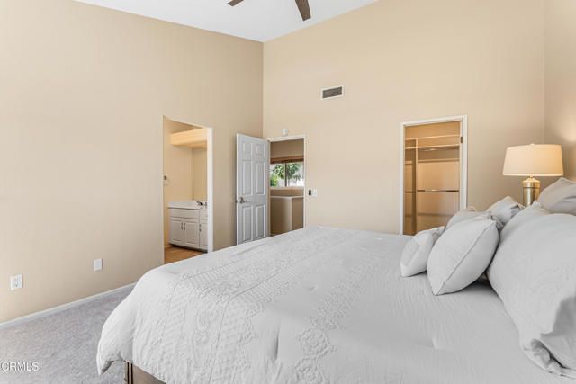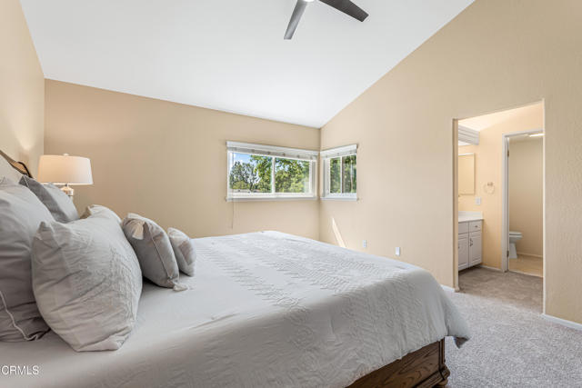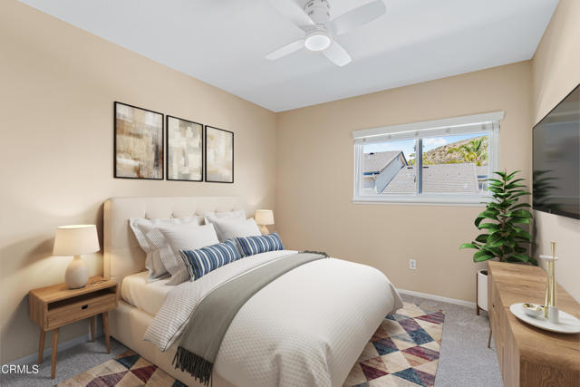 Step into comfort and style in this beautifully updated 4-bedroom, 3-bathroom single-family home, offering approximately 1,608 square feet of open-concept living in a highly sought-after neighborhood. With new carpet and fresh paint throughout, this two-story residence is filled with natural light, thanks to energy-efficient Anlin dual-pane windows and thoughtfully placed recessed lighting.The living room welcomes you with soaring high ceilings, a sleek 'ice' fireplace, and floating shelves that add both function and flair. Just off the living space, a sliding glass door leads to a private patio--perfect for relaxing or entertaining--while offering peaceful mountain views from the upper level.The kitchen is a true highlight, featuring Caesarstone countertops, Thermafoil pull-out cabinets, and an abundance of counter and cabinet space, making meal prep and hosting a breeze. The open dining area flows seamlessly into the main living space, enhancing the home's warm, airy atmosphere.On the main floor, you'll also find a flexible bedroom that can easily serve as a home office, complete with its own sliding door for privacy and convenience. A full bathroom on this level adds to the functionality of the layout.Upstairs, the spacious primary suite boasts high ceilings, a new ceiling fan, a huge walk-in closet, and a private en suite bathroom with dual sinks. Two additional bedrooms share a full bathroom, each thoughtfully updated with new ceiling fans for comfort.This home is equipped with modern upgrades including a 50-gallon water heater, a 220-volt upgraded electrical panel that makes adding an EV charger easy, and a 2-car garage featuring two large overhead storage racks. The AC condenser was replaced in 2020, ensuring efficient cooling during warmer months. Residents also enjoy access to a community pool, rounding out the lifestyle offered here.Blending quality, functionality, and an ideal location, this move-in-ready home is a rare opportunity you won't want to miss.Interested in this Listing?
