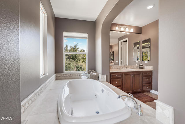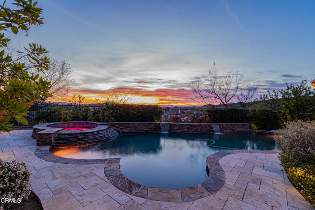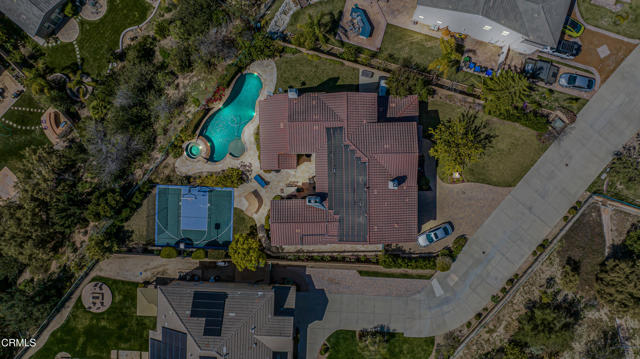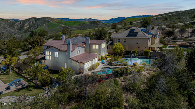 Indulge in refined living with this extraordinary luxury estate, well-situated at the end of a private drive off a cul-de-sac located in one of Simi Valley's most desirable neighborhoods. Offering breathtaking sunset and mountain views, this property is set on an oversized lot, delivering ample space and privacy.Upon entering, you'll be greeted by beautiful marble flooring and a flood of natural light with recessed lighting throughout the open floor plan. The formal living room is highlighted by a 20 foot ceiling, a switch-activated fireplace and custom-built shelving.The kitchen comes with a large marble island, Thermador appliances, including a six-burner range, dual ovens, built-in refrigerator/freezer, warming drawer and trash compactor. Enjoy meals in the formal dining area or the breakfast nook. The kitchen opens seamlessly into the family room, which has its own fireplace, creating a nice ambiance for everyday living and entertaining. The space also comes with in-ceiling, surround sound speakers and a custom, built-in entertainment center.The home has five bedrooms and a bonus room, including an expansive master suite with a separate sitting area, private, enclosed balcony with panoramic views and an oversized walk-in closet. The master bathroom features a jacuzzi tub, separate shower and dual vanities. The estate also includes four additional well-sized bedrooms and four bathrooms, one being a Jack and Jill for added convenience.The backyard was a bare lot when the home was last purchased in 2017. Over $150K has been invested in landscaping, hardscaping, a saltwater pool with flagstone coping, a natural travertine deck, a built-in jacuzzi, and a custom sports court with a professional-grade adjustable rim. The pool and jacuzzi are heated by a fully paid-for solar system. The grounds have extensive outdoor lighting, a courtyard fireplace, and a custom BBQ island, which is plumbed for natural gas.The estate comes with a 3-car garage and no detail has been spared to ensure the best in comfort, design and modern living. With its prime location, exceptional features and attention to detail, this residence represents a high standard of luxury living.Interested in this Listing?