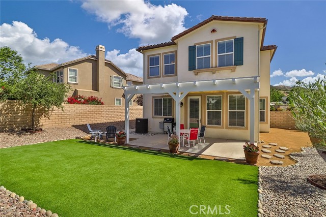 Welcome to one of the best lots in the Crosspointe neighborhood of Big Sky. This charming four-bedroom, three-bath home boasts 2,034 of open interior living space on a large 8,700-square-foot lot. When you step out of your car, you will notice the meticulously manicured drought-tolerant landscaping and the freshly painted garage, shutters, and front door. The downstairs features a kitchen with built-in stainless appliances, upgraded cabinets, a center island, a walk-in pantry, a stainless double sink, granite countertops and backsplash, wood & carpet flooring, a gas fireplace in the family room with an upgraded hearth, custom built-in media center, downstairs bedroom, and a full bathroom. Walk upstairs to find the laundry room, large built-in desk with additional cabinet space, two guest bedrooms, a primary suite with a large ensuite, a walk-in closet, a jetted soaking tub, two sinks, and a view of the mountains. The low-maintenance, drought-tolerant backyard features two large side yards and a pergola with shade covering that is perfect for outside eating/entertaining, with no homes behind you or to one side.Interested in this Listing?
