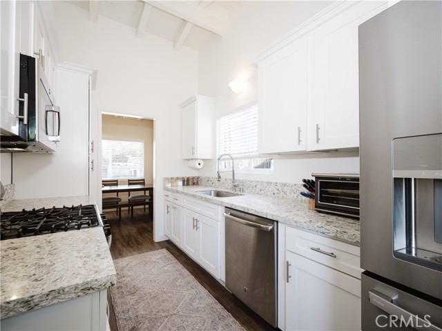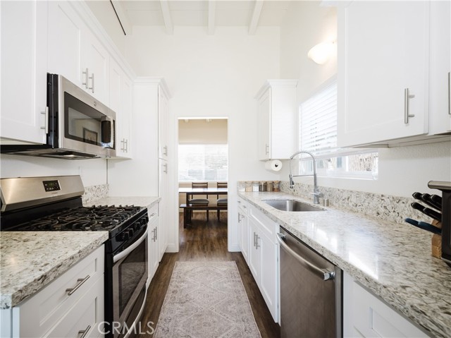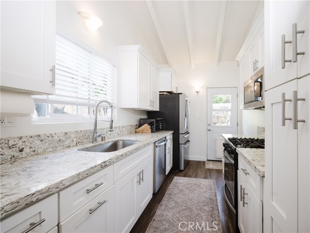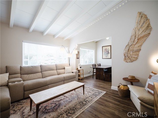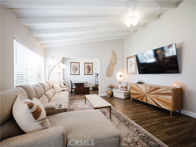 Welcome to this lovely ranch style 3-bedroom, 2-bath home expanding 1141 square feet of renovated living space. The home has been updated, featuring new exterior paint and interior paint, plush new carpet in all bedrooms and laminate wood-like flooring that extends throughout the rest of the home. Enjoy the updated kitchen, and bathrooms plus newer vinyl double-pane windows for enhanced comfort and efficiency. Upon entering, you'll find a spacious living room with direct access to the dining area, both with high beamed ceilings and ceiling fans that create an open, airy feel. The bright, remodeled kitchen boasts shaker-style cabinets, granite countertops and stainless steel appliances. Down the hall, two secondary bedrooms share a refreshed bathroom, complete with new cabinets, countertop and subway tiles. The private primary bedroom offers an attached updated bathroom with a vanity and a walk-in shower. The expansive backyard offers a grassy lawn, fire pit, gazebo and shed. This home is ideally situated in a great location, providing easy access to local shopping, a nearby park, and bike trails.Interested in this Listing?