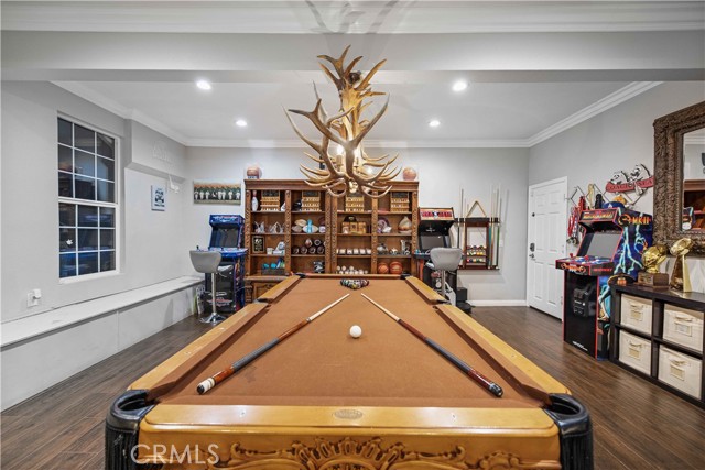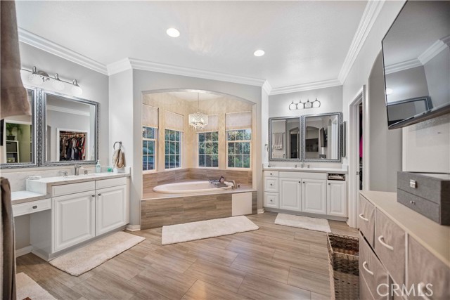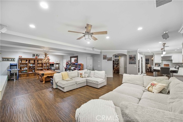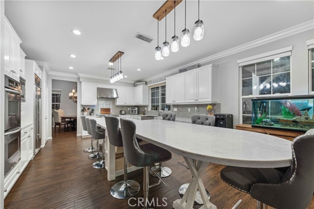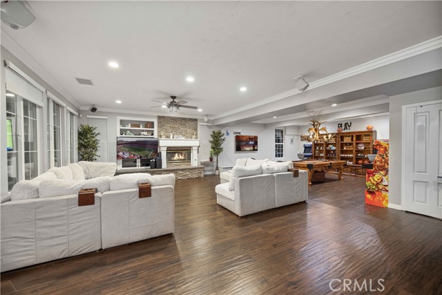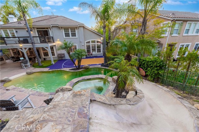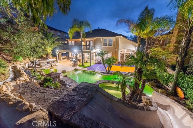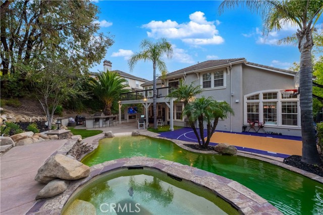 A true toast to luxury living in "The Oaks" at Wood Ranch! Nestled in the hills of a quiet gated community in one of the most sought after neighborhoods in all of Simi Valley, CA, this gorgeous home has been remodeled to perfection. With a dash of modern living and a touch of refined elegance, this spacious 5-bedroom, 4.5-bathroom property offers a blend of sophistication and warmth that can be found nowhere else on the market. Spanning over 4000 sqft of comfortable living space, almost every inch of this stylish property has been redesigned with the highest-quality custom upgrades. Its interior features include: open floor plan with high ceilings, custom fixtures throughout, durable tile wood-like flooring downstairs, one downstairs guest suite w/ private bathroom, fully remodeled chef's kitchen with an extended double-stacked island (seats 10 people), stainless steel appliances (Sub-Zero refrigerator/freezer), custom cabinets, farmers sink, designer-style backsplash & quartz countertops. Its light and bright interior boasts a spacious living room, formal dining room, and huge family room w/ updated stacked-stone fireplace & oversized game room/flex space. The upstairs living quarters only enhance the home's luxurious feel. Every sightline is brimming with beautiful features, including a remodeled staircase w /wrought-iron railing, custom accents steps, spacious loft area opening to 3 large guest bedrooms, a Jack n' Jill bathroom, en-suite bedroom/bath w/ private front balcony, and a gorgeous primary suite w/ sitting area, fully remodeled bathroom w/ his & her sinks, his & her walk-in closets w/ custom built-ins, jacuzzi spa tub, quartz countertops & custom tile rain shower. The primary suite also offers a stunning patio deck overlooking a spectacular backyard area. The exterior grounds are truly an entertainer's delight, boasting complete privacy on all sides, with an incredible layout featuring a sport-court, turf putting green, artificial grass, built-in BBQ, pool & spa w/ waterfalls & water slide, a spacious covered patio w/ outdoor fireplace and lounge area, and lush landscaping throughout. Location is prime for this beauty! Close to popular hiking trails, this home is also walking distance from local parks, just minutes away from Wood Ranch Country Club, Wood Ranch Elementary, restaurants, family entertainment and the World-Famous Ronald Reagan Presidential Library. Raise your glass...this is luxury living at its finest!Interested in this Listing?