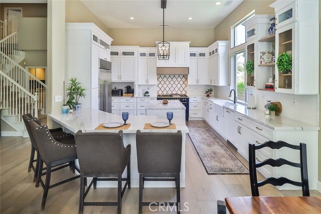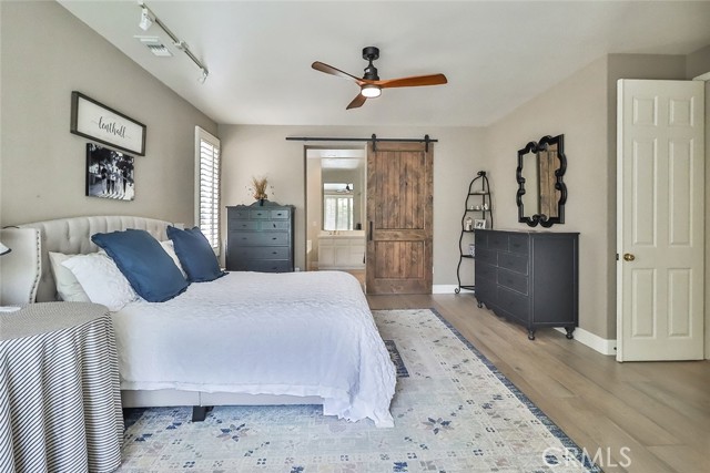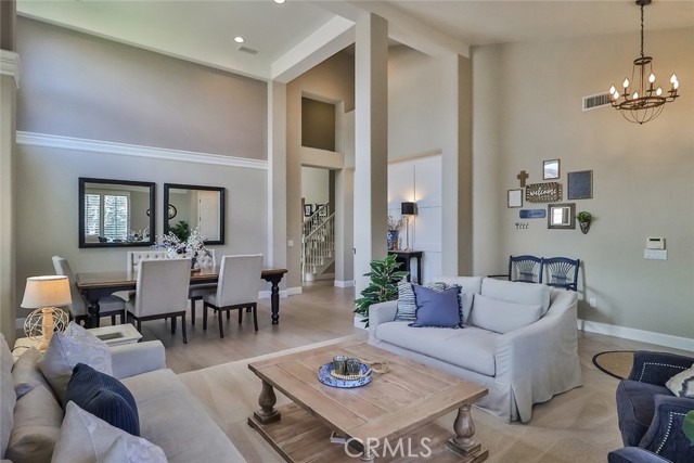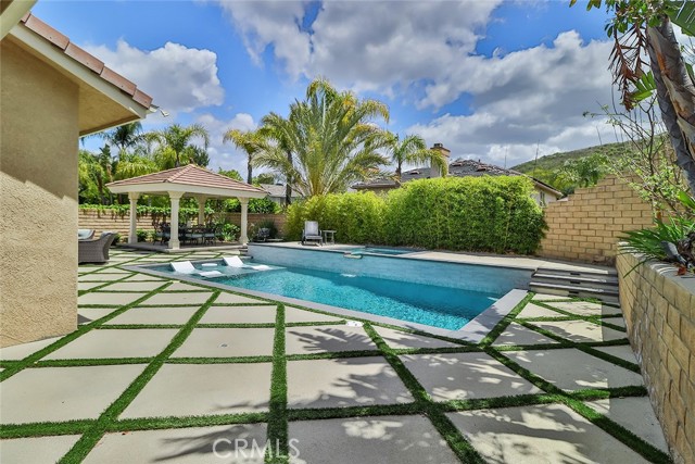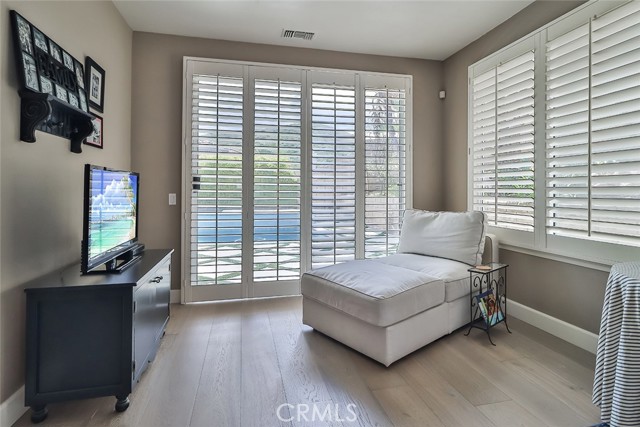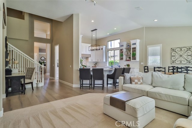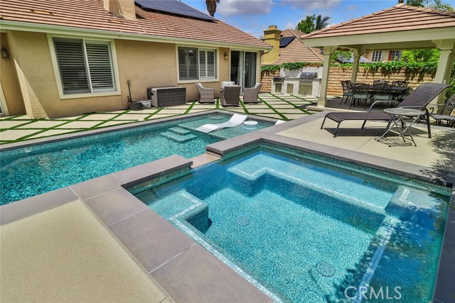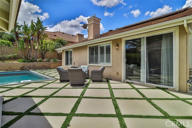 Welcome to this exquisite 2,976 square foot, 5-bedroom, 3-bathroom home located in the highly sought-after community of Wood Ranch. This remarkable property offers an array of luxurious features and modern amenities, making it a perfect blend of comfort and elegance. As you enter, you will be greeted by high ceilings that create a sense of grandeur and spaciousness. The large living room is ideal for entertaining guests or enjoying quiet family moments. The family room, complete with a cozy fireplace, provides a warm and inviting atmosphere for relaxation. The downstairs master bedroom suite features a farmer s door leading into the bathroom, custom shutters, and direct access to the outdoor oasis. The ensuite bathroom boasts dual sinks, a walk-in closet, and a deep soaking tub, perfect for unwinding after a long day. The chef's kitchen is a culinary enthusiast's dream, equipped with upgraded stainless-steel appliances, a 6-burner cooktop with griddle, a deep farmer's sink, plenty of counter space, and tons of cabinet space. The center island and eat-in area offer additional space for meal preparation and casual dining. Step outside to discover your private backyard paradise. The saltwater pool and spa create a resort-like ambiance with a large soaking area and two built-in lounge chairs. The expansive yard features multiple areas for relaxation, including a built-in BBQ area, numerous lounging areas outside a covered patio. Additional features of this stunning home include a 3-car garage, custom window treatments, recessed LED lighting, and energy-efficient upgrades such as a tankless water heater, solar panels, and two power walls. This home is ideally situated close to hiking and biking trails, restaurants, shopping, golf courses, and excellent schools. Don't miss the opportunity to own this dream home in the beautiful community of Wood Ranch. Schedule a showing today and experience this property's luxury and tranquility!Interested in this Listing?