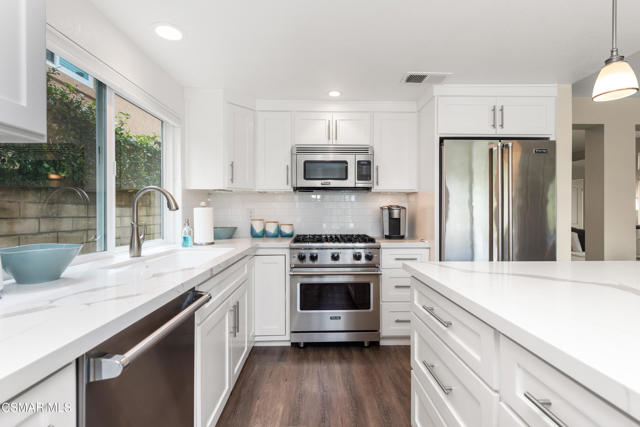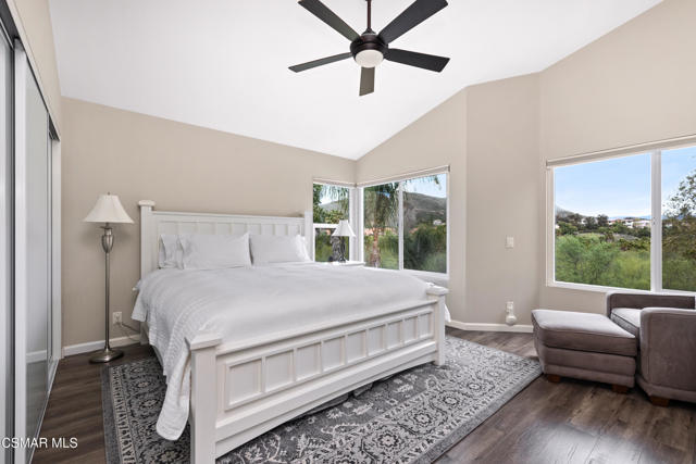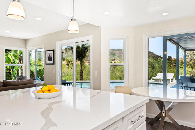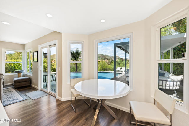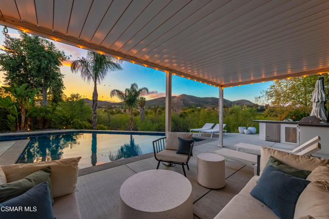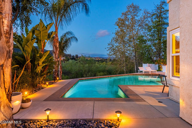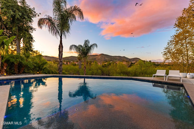 This is an exceptionally rare opportunity that seldom becomes available; it truly stands alone. Nestled in an exclusive, gated community within Wood Ranch, this uniquely private view property embodies the resort lifestyle you've always envisioned. Every day feels like a vacation in this one-of-a-kind residence. With over $250,000 invested in its stylish design, this haven offers breathtaking views of nature together with a professionally crafted backyard oasis featuring a resort-styled private pool with large Baja shelf, dining bar, built-in BBQ and louvered cabana. Imagine lounging by the pool on lazy weekends, having friends over for a twilight barbeque or just enjoying the spectacular view from nearly everywhere in the house. Inside you'll discover a stunning kitchen with white quartz counters, newer cabinetry, and Viking appliances, complemented by completely remodeled bathrooms and high-quality wood-like flooring. Other upgrades include newer Milgard windows throughout, high-end glass entry doors, newer recessed & decorative lighting, ceiling fans, outlets and switches. This home is ideal for highly selective buyers who value a truly move-in ready home. Wood Ranch is a beautifully designed, master-planned community that offers hiking trails, parks, dining, shopping and a private country club featuring an 18-hole golf course among other amenities. It's only minutes to Thousand Oaks and Westlake Village. Don't miss this extraordinary opportunity!Interested in this Listing?