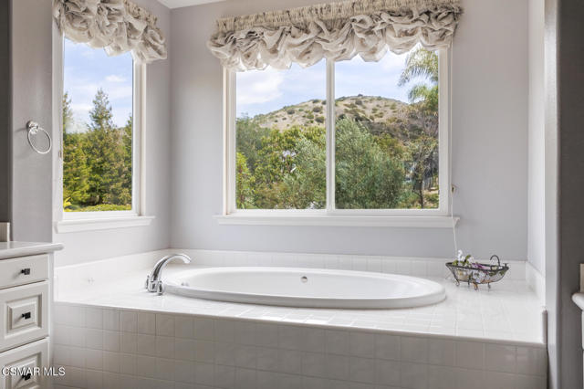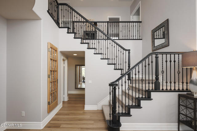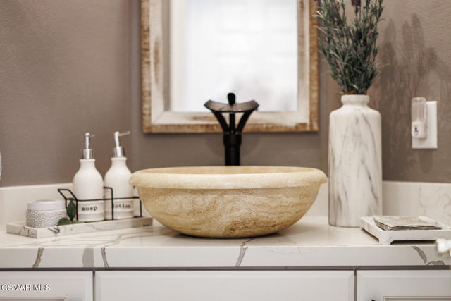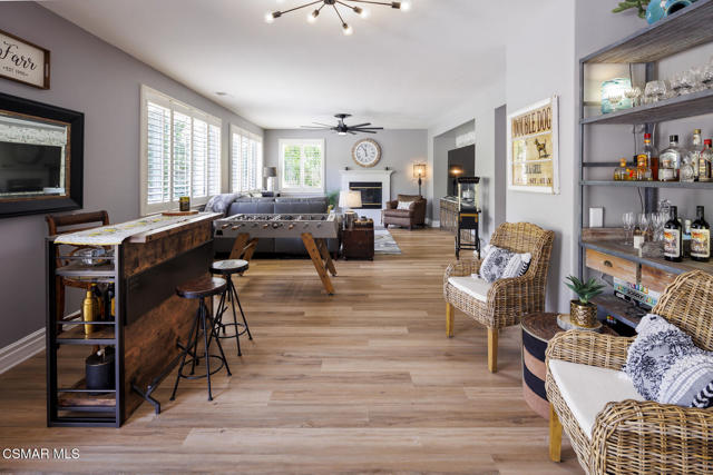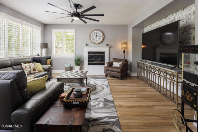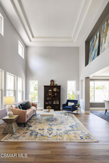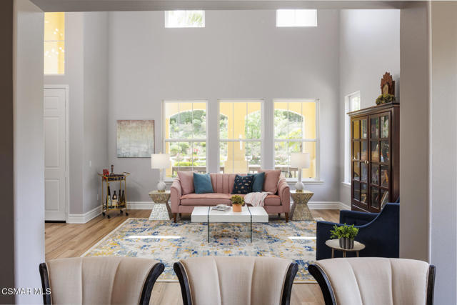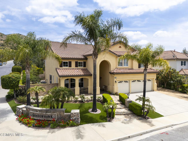 As you walk through your garden, considering which fruit tree or herb to pick, you're bound to smile knowing that whatever you leave behind today, you'll surely collect tomorrow. Peaceful is a word that comes to mind when describing this massive nearly 4300 SF, 6 bed, 4.5 bath home, high above it all, in the east Simi Valley community of Shadow Hawk @ Indian hills. Located on a fabulous corner, adorned with the Shadow Hawk monument informing visitors they've arrived, is 5859 Evening Sky Dr., so called because at night you'll feel as if you could touch the stars. Inside, every room is spacious. For formal entertaining there's a perfect dining and living room with a towering coffered ceiling. But let's face it, we live in the great room and what a great room there is! The redone kitchen is quite literally breathtaking. The rich white and blue millwork exude a refined elegance with a plethora of drawers which are always preferred to doors, while the used multi colored brick backsplash is reminiscent of a turn of the century farmhouse. This is accentuated by a sprinkling of leaded glass cabinet doors, black hardware in the kitchen and butler's pantry with wine rack and coffee bar. The grand quartz island with the meandering radius, is perfect for bar stool casual dining and for the chef there's fabulous stainless steel appliances, a 42 inch built-in fridge and a decorative commercial hood. The nook and family room are so large, there's room for a breakfast table, a billiard or foosball table and a huge sectional along with a wall for a massive 85''TV if that's your style and taste. The luxury vinyl floors compliment the farm to table feel of the home (but if you prefer travertine, it's still underneath!) With 6 bedrooms, you can imagine there's literally room for everyone. With a full ensuite down, your guest or elderly family have the perfect resting spot, while upstairs the bedrooms are fantastic. The primary is vast and allows the owner to furnish it with a sitting area or cozy den for late night TV, while the bath is highlighted by a shower large enough for two. Both rooms offer lovely hilltop views. All the secondary bedrooms are spacious but bed 6 is oversized and can serve as a bonus room, gym, music studio or sensational office. With a 3 car garage and a level street with no neighbor across, there's ample parking and even room for boat or trailer on the side. Additional amenities include a captivating crystal entry chandelier, a built-in BBQ and bar, drought friendly turf in the rear and a gate to the common area slope where you'll find lemon, fig and other delectable fruit varieties. Shadowhawk features low homeowners dues and is close to fabulous hiking trails, nature, the 118 fwy and the San Fernando Valley.Interested in this Listing?