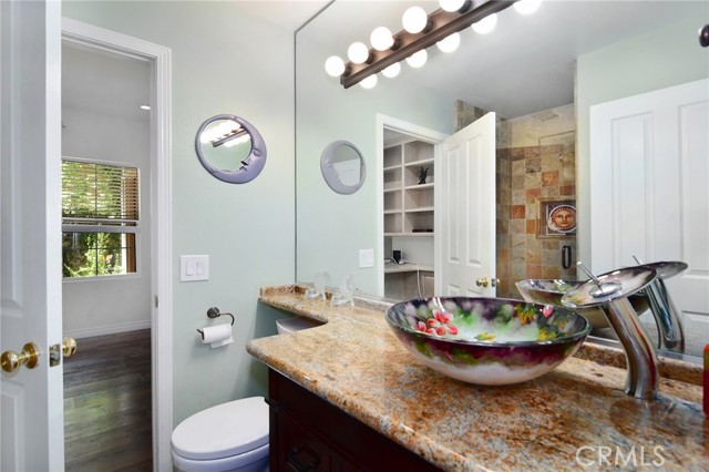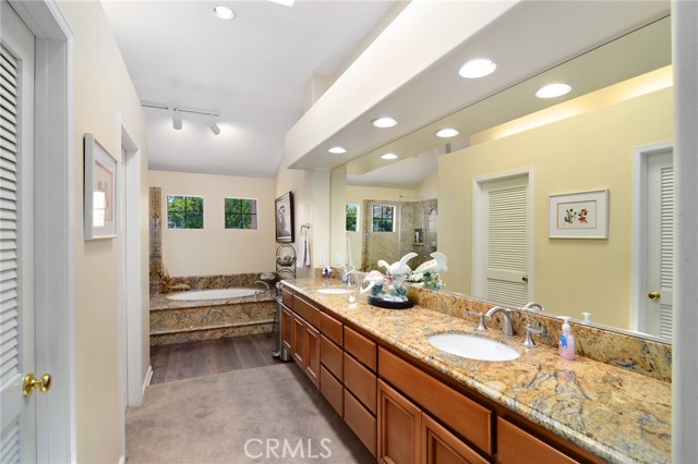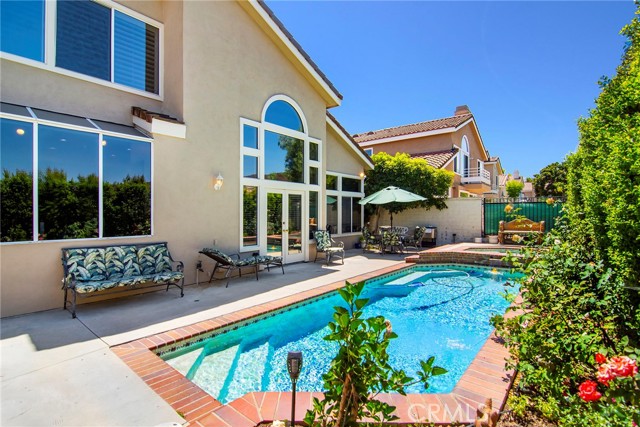Discover this stunning 4-bedroom home, complete with a downstairs bedroom suite and additional bathroom, designed to fulfill all your desires! Nestled on a peaceful cul-de-sac in the Wood Ranch community, this residence offers nearly 2,941 sq ft of living space. Step through the double doors into a breathtaking entryway, featuring an illuminated living/formal dining area and an elegant wrought iron staircase. Perfect for gatherings, the kitchen/dining and family room boast a 6-burner stove, two ovens, an island, and delightful backyard views. The private, spacious yard is an entertainer's dream, featuring a pool and spa, ample room for outdoor relaxation, an outdoor BBQ kitchen with a sitting area, and a charming fireplace. The lower level includes a bedroom suite with a bathroom featuring a stall shower, and a separate laundry room with garage access. Upstairs, the primary bedroom offers dual sinks, a soaking tub, and a stall shower. Additional bedrooms share a bathroom with dual sinks and a tub/shower combination. Enjoy picturesque views of the surrounding mountains throughout the upstairs area. Conveniently located near hiking trails, golf courses, shopping, and more, the community offers patrolled security, a park, and a nearby pool.Interested in this Listing?