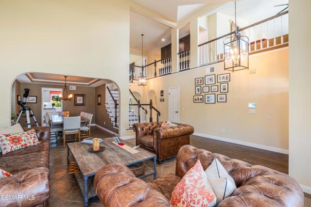 Tucked at the end of a quiet CUL-DE-SAC, this beautifully UPDATED home offers SWEEPING VIEWS of both the mountains and city lights, has RV ACCESS, POOL/SPA a and BACKS OPEN SPACE for added privacy and SERENITY. Step inside to find rich wood floors on the main level, where a formal living and dining room greet you with soaring ceilings and elegant finishes. The REMODELED KITCHEN is a CHEF'S DREAM, featuring a walk-in pantry, glass-front cabinets, a central island, stainless steel appliances, and a charming brick accent by the range. The kitchen IS OPEN TO THE COZY FAMILY ROOM with a FIREPLACE, perfect for relaxing evenings. Plantation shutters adorn the windows throughout the home, featuring a DOWNSTAIRS BEDROOM with sliding doors to the lovely yard and a fully remodeled bath provides a convenient guest or in-law suite. The indoor laundry room and direct garage access, enhance everyday convenience. Upstairs, lovely wood stairs lead to a spacious landing. The EXPANSIVE PRIMARY SUITE features vaulted ceilings, a double-door entry, two walk-in closets, and a STUNNING REMODELED PRIMARY BATHROOM with a navy blue dual vanity, floor-to-ceiling custom tile-work in the oversized shower, and a luxurious soaking tub. Additional upstairs highlights include ample cabinet storage, a laundry chute, remodeled guest bath, and GENEROUSLY SIZED GUEST BEDROOMS offering picturesque VIEWS. The HUGE BONUS ROOM has a FIREPLACE, vaulted ceilings, wood floors, and an abundance of natural light makes an ideal game room or media space, complete with a wet bar and sink for entertaining. Step outside to a private backyard oasis featuring a SPARKLING and SPA, surrounded by elegant pavers, separate seating areas, and a built-in FIRE-PIT with a dedicated gas line. Palm trees and OPEN SPACE CREATE A STUNNING BACKDROP, making this yard a true retreat. The 3-car garage is finished with built-ins. Includes a newer pool heater and pump installed in 2023. This home is the perfect blend of comfort, style, and functionality--ready for you to move in and enjoy. COMMUNITY TENNIS COURTS, PARK, GREEN BELT, AND BASKETBALL COURT.Interested in this Listing?