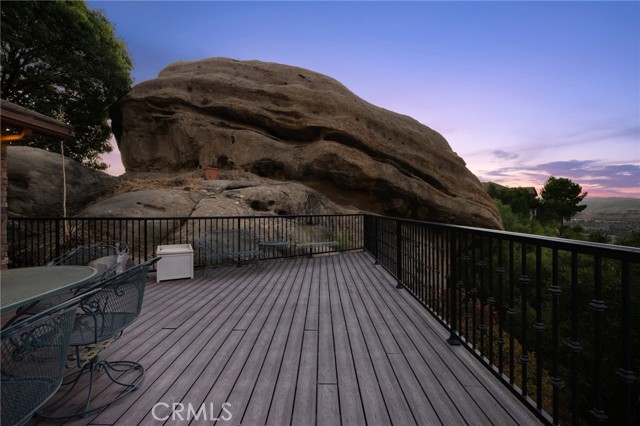 BOM DUE TO BUYER FINANCING, NO FAULT OF SELLER. Warm and Welcoming Santa Susana Knolls Custom Home with Magnificent Views! This beautiful and unique custom home was designed to maximize breathtaking views atop the charming Santa Susana Knolls neighborhood. Enter into a light & bright living room graced by a rustic fireplace and views to the dining room, gourmet kitchen and family room beyond. A secluded sitting area, shaded by the majestic boulder, offers a peaceful & meditative moment to relax and unwind. The remodeled kitchen is a chef s dream with stainless appliances including an oversized gas range, refrigerator, trash compactor, microwave, wine refrigerator and warming drawer. Granite counters, pendant lights, a custom backsplash and lovely garden window above the sink enhance the beauty of this heart of the home. The large pantry with pullout drawers, self-closing cabinetry with custom designer accents and center island with additional seating add practical benefits enjoyed by all. The den/family room is steps away and offers a wet bar and very flexible space for a home office, media room, game room you decide! Sliding glass doors welcome you onto the spacious rear deck with the most stunning views in every direction. An ideal location for entertaining guests, the deck offers space for many to sit, dance, or play. The 2 spacious secondary bedrooms each have a charming balcony with superb mountain and sunset views. The hall bath has been remodeled with custom cabinetry, stone counters, dual sinks & soaking tub. The primary suite is located at the end of the hall offering added privacy, a large walk-in closet, remodeled primary bath with an oversized walk-in shower, and serene mountain views. A set of sliding glass doors lead to a private retreat area. Downstairs there is a place that has so many possibilities with separate entry access, full bathroom, open area and an additional room. An ideal in-law suite, maid s quarters, home office, art studio, library or music room. The laundry room and laundry chute are also downstairs with additional storage. Step outside to a pretty little garden and then around the corner to the bubbling spa and those breathtaking views. Set back from the street, there is an expansive front garden and parking for 9 cars or space for an RV. Though the Susana Knolls is rural with abundant wildlife, you are just minutes from the 118 freeway, train station and Simi Valley dining and shopping.Interested in this Listing?