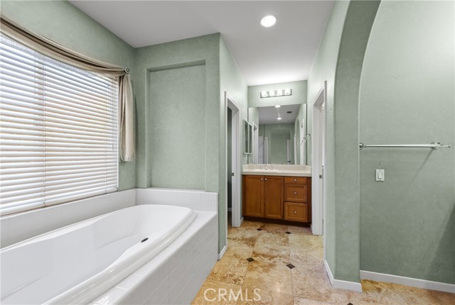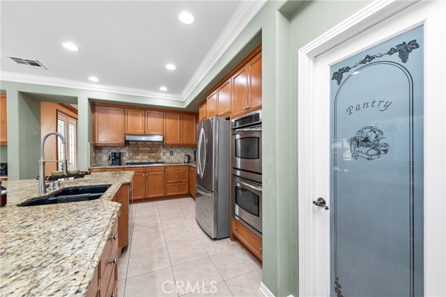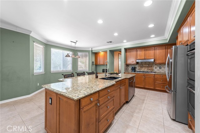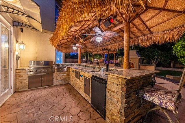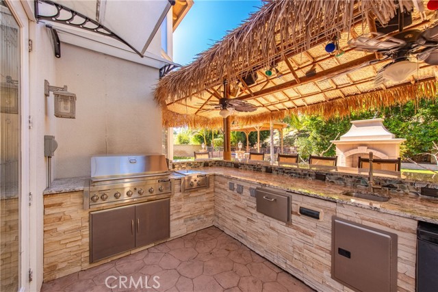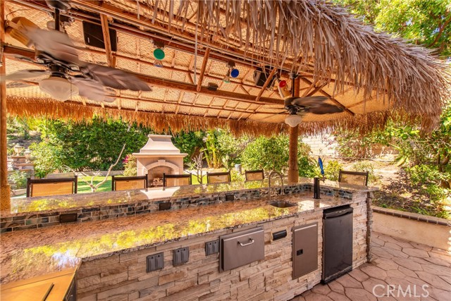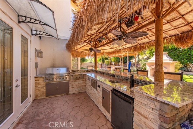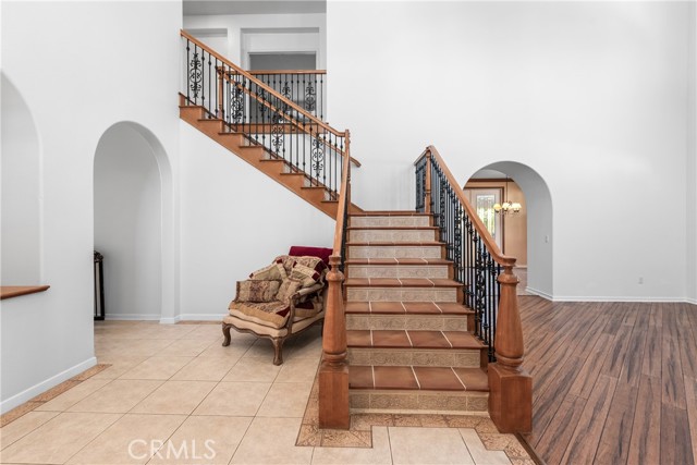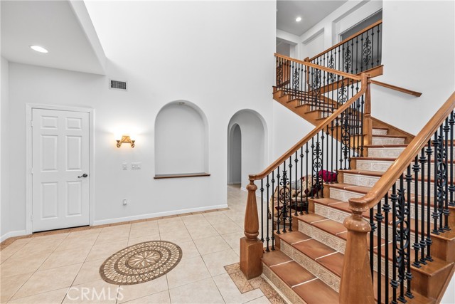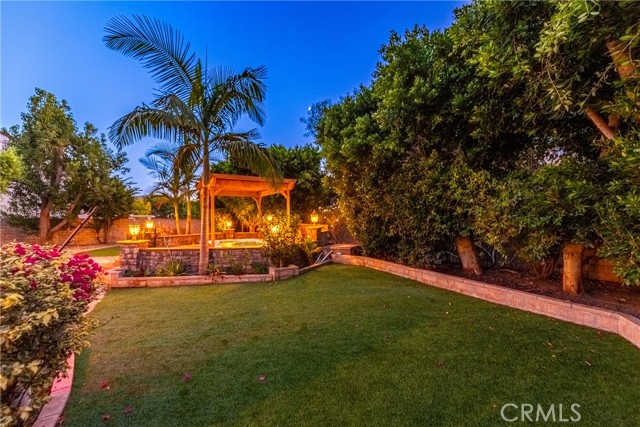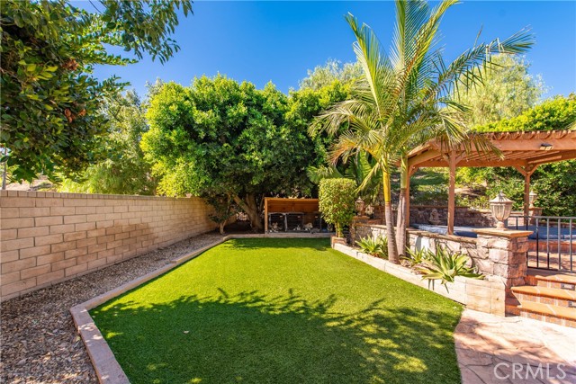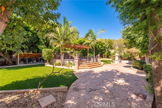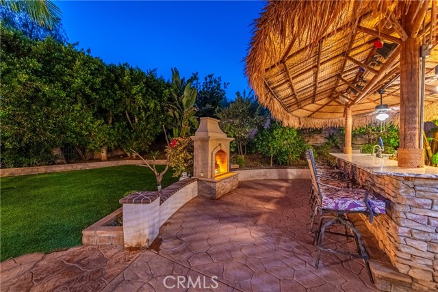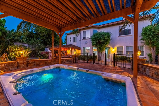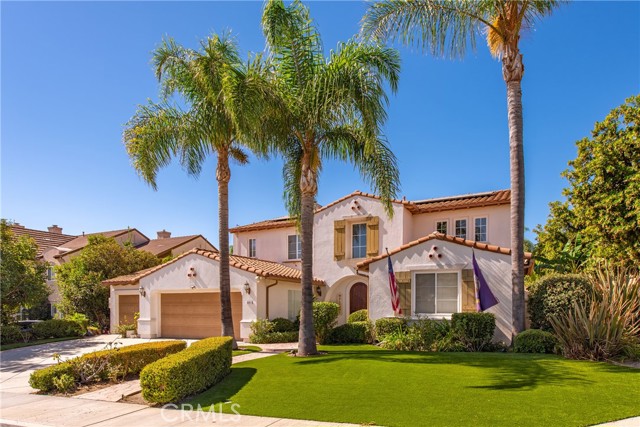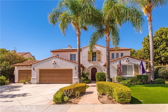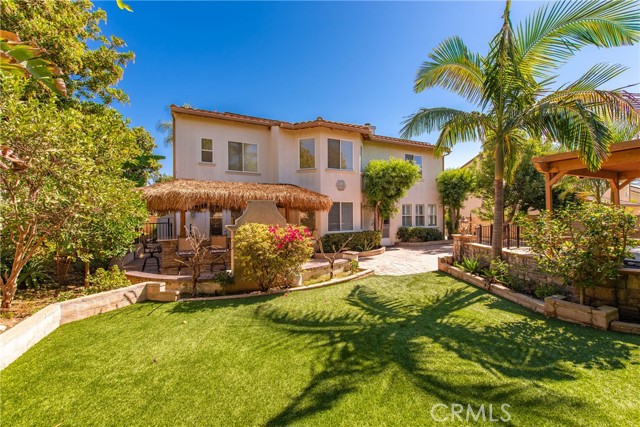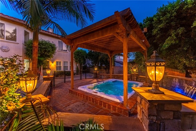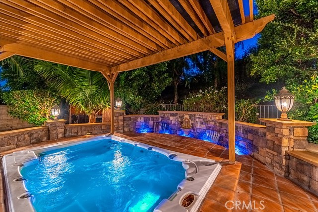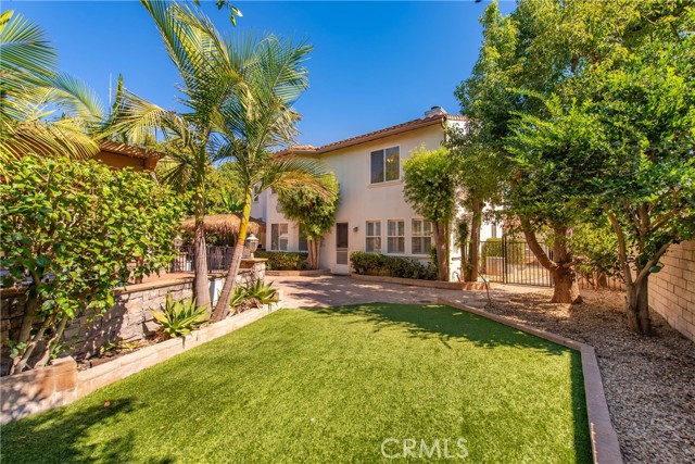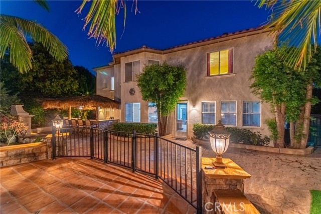 JUST IN TIME FOR YOUR SUMMER BBQ'S!! This stunning 4 BED 4 BATH + PLUS OFFICE (which can be used as a 5th bedroom) Spanish-style luxury home, a true gem for those who appreciate elegance and the art of entertaining awaits. The property showcases a meticulously designed backyard that feels like a private island retreat, offering an unparalleled escape from the everyday. Inside you'll find a beautiful iron staircase adorned with Spanish tile as you enter. The formal living room features bamboo flooring and high windows, creating an inviting and airy atmosphere. Throughout the home, extravagant archways add a touch of grandeur, including one that opens to the formal dining area with a hutch nook and French doors. For remote workers, a separate downstair office provides a quiet and productive space away from the main living areas. This can also be used for guests or mother in-law quarters. The home also includes indoor laundry, three-car garage with a workshop area and new water heater. The whole house water purifier ensures clean, fresh water throughout the home, while dual A/C units (upstairs unit is brand new) and surround sound wiring enhance comfort and convenience. The gourmet kitchen is a chef's delight, featuring a large island/bar with 18 tile flooring, a 5-burner Wolf stove, a new Bosch dishwasher, travertine backsplash, double oven and generous walk-in pantry with additional storage under stairs. The kitchen opens into a family room with wood flooring and a breakfast area that includes an office/homework nook. Upstairs, the home offers well-designed accommodations including Jack and Jill rooms with a shared bathroom, an additional bedroom with an en suite bathroom overlooking the backyard, and a luxurious primary suite. The primary bedroom features an office nook, double walk-in closets, a standalone shower, a sunken bathtub, and vanity. Step outside to discover an entertainer's paradise. The backyard features a beautiful bar with a granite top and a striking glass tile backsplash. This space is equipped with a kegorator, ice holder, bbq. burners, and bar seating, making it perfect for hosting friends and family. A charming palapa adds a tropical flair, while an inviting outdoor fireplace creates a cozy ambiance. The centerpiece of the backyard is the lavish 10-person spa, nestled beneath a pergola and complemented by a serene waterfall and sophisticated lighting. A MUST SEE! Close to 23 and 118 freeways, shopping and schools.
