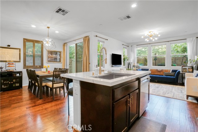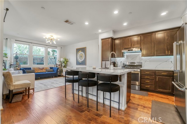 Welcome to this magnificent dream family townhome located in the heart of highly sought east Simi Valley, constructed in 2016. This rarely available 5-bedroom floor plan, inspired by contemporary design themes throughout this fantastic home shows like a model! This is a tastefully upgraded home including stunning quartz countertops with upgraded cabinets, modern stainless steel appliances, refrigerator, range oven, microwave, dishwasher, custom-engineered distressed hardwood floors, energy-saving LED recessed ceiling lights, energy-efficient windows, sliding doors, and custom paint throughout. Beautiful custom-made window treatments by Graber (including modern and minimalistic honeycomb blinds throughout, plantation shutters and custom curtain rod in the dining room). Fully paid for solar panels and battery pack installed so never out of power. For electric car owners, 240 Volts fast charger is a bonus. Open and bright two-story floor plan with over 2165 sqft. On the first floor, you'll be welcomed by the expansive living room, formal dining area, bedroom, full bathroom, and ample storage space throughout (including a walk-in pantry). The house also features a private patio for relaxing, barbecuing, entertaining, or children's play. The 2-car garage, with extensive built-in storage, offers ample space for all your belongings. The second floor has a luxurious master suite featuring a walk-in closet and an elegant bathroom. Additionally, this floor includes three more spacious bedrooms, two full bathrooms, and a laundry room conveniently located near all the bedrooms and ample storage areas throughout. Entire home is equipped with custom wired security alarm service. Surrounded by scenic hiking trails including the famous Hummingbird Trail. Best scenic mountain views of the entire development with the most privacy and beautiful massive oak tree at front door. HOA includes community pool, grounds maintenance, and earthquake insurance. Exclusive community pool located in the most picturesque setting below the famous "Happy Face Hill" of Simi Valley. Minutes to schools, convenience stores, Porter Ranch shopping centers, movie theaters, fine dining, public transportation, and is approximately 30 minutes to Malibu beaches! Highly motivated sellers! Priced for quick sale! Won't last!Interested in this Listing?