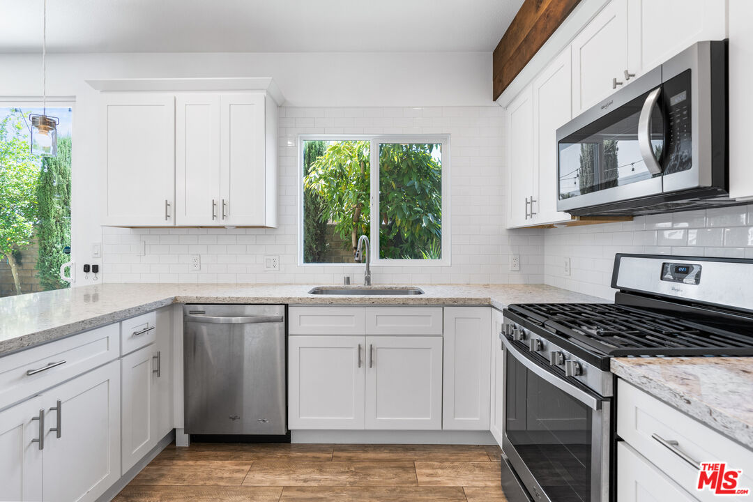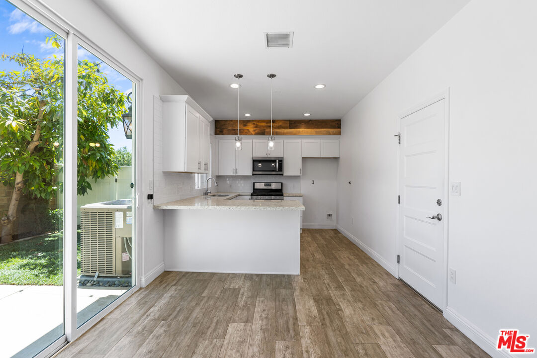 Welcome to your dream oasis in the heart of Simi Valley! This 2017 build is located in the highly desirable Bella Vista gated community, offering just under 1,400 sq. ft. of stunning modern amenities. This gorgeous 2-story, end-unit, offers 3 bedrooms and 2.5 baths with an attached 2 car garage. The custom fireplace, with upgraded recessed lighting, is the WOW factor you are looking for when you enter your home. The open concept kitchen leaves nothing to be desired, with beautiful white shaker cabinets, subway tile backsplash, stainless steel appliances, pendant lights, barstool seating and beautiful quartz countertops to complete the vibe! This beautiful interior includes 3 bedrooms, all upstairs, including a master bedroom with an attached walk-in closet and bathroom suite. An additional full bathroom is located upstairs, next to ample hall storage, with the half bathroom conveniently located downstairs for guests. A private backyard featuring an avocado tree and lime tree, a fountain, and access to the shared side grass area is what makes this unit special. Within Bella Vista this home is THE one that is most desirable because of all of its upgrades and location in the community. Snag this fresh beauty while you can, as it is sure to go fast!Interested in this Listing?