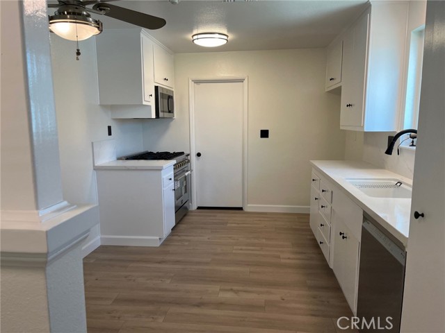 Most beautiful Ranch Style corner home! The entire home inside and out has just now been completely newly upgraded and renovated with top of the line...everything! New Anlin windows and sliders, new wood like laminate flooring. Eat in Kitchen with charming nook, all new top of the line stainless appliances include Bosch dishwasher, Forna 6 burner oven and built in microwave. Stunning single huge chef kitchen sink, customized kitchen cabinetry with soft close drawers plus white quartz counters. Bathrooms with new Kohler toilets and faucets, all new hot and cold plumbing lines, new water heater, new window coverings, new ceiling fans throughout, new alarm system, new security lighting. Central Heat and Air Conditioning. Added new laundry cabinetry in garage. Primary bedroom has been enlarged and has mirrored closet doors Primary large 2 sink bathroom with tub and shower, 2nd bathroom custom upgraded with amazing stone stall shower. Large living room with huge sliders out to wonderful full covered wood patio with lights. Large grass yard with mature fruit trees, oranges, mandarins, fig, avocado, lemon and lime and more. Direct access from kitchen to garage as well as garage direct access to back yard. Every conceivable convenience here. This is a rental DREAM PROPERTY, WAITING TO WELCOME THE MOST particular. Tenant.Interested in this Listing?