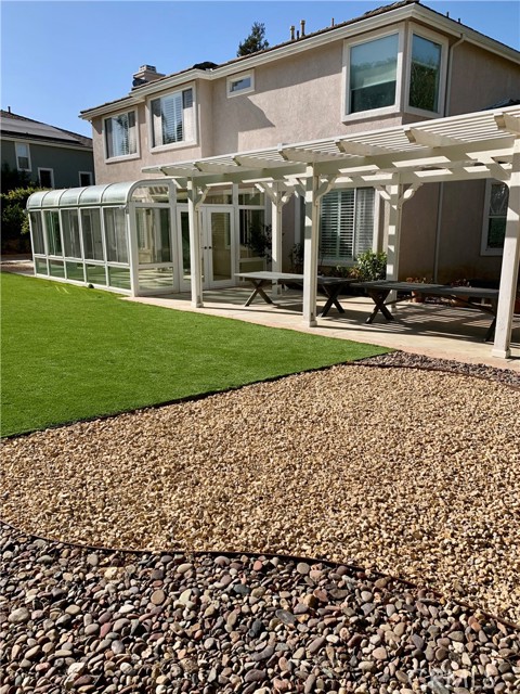 Spacious home on single loaded portion of street. Currently tenant-occupied. Will be ready for move-in 7/1/2025. Entire interior has recently been painted, and new plank flooring installed. Vaulted ceilings in entry and living room. Bright kitchen with granite counters and island opens to large family room, and sliding glass door opens to an enormous sun room. Fireplaces in family room and master bedroom. Includes 75" HDTV, washer and dryer. Enjoy a private, peaceful backyard with a pergola and mature landscape. Drought tolerant landscape uses very little water. 3 car garage with adjacent RV parking. Beautiful, safe neighborhood surrounded by trees and a nearby park. Small dogs under 35 lbs allowed.Interested in this Listing?