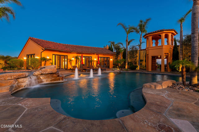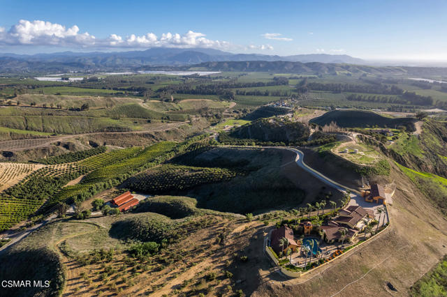 An absolutely awe inspiring masterpiece estate sitting atop over 46 private acres in the highly desirable small gated community of La Loma Ranch. Ideally set behind a private gate and up a long driveway sits this remarkable one of a kind Mediterranean villa boasting the most incredible 360 degree jet liner views in Ventura county. The unobstructed panoramic views of the ocean, mountains and valley below are truly second to none! The primary residence spans 5448 square feet and there is also a 1000 square foot detached guest house, ranchers quarters with kitchen and bathroom, barn and garages for approximately 26 cars. The primary home is graced with an impressive two story entry with curved wrought iron staircase. There is also a theater, office, beautiful center island kitchen and a tremendous primary suite with two balconies, vaulted ceilings, hardwood floors, fireplace and a spa like bathroom with jetted tub, steam shower and fireplace. There are also 3 additional bedrooms in the main home. The detached guest house has one bedroom, living room, kitchen, fireplace, eating area and beautiful bathroom. The resort quality yard provides a pebble tech pool and spa with water features, lush mature landscape and explosive views from everywhere! This true compound villa is a one of one! There are 3 acres of Haas avocado orchards, prime lower level grounds ideal for tennis court or go kart tracks, epic massive garages including one with a second story expansive office space and so much more! This is absolutely the premier view ranch estate in highly desirable Somis! A very special offering!Interested in this Listing?
