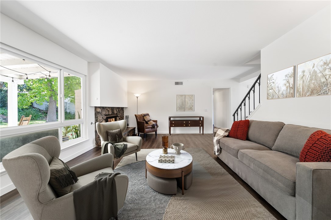 Welcome to this beautifully updated 5-bedroom, 3-bathroom residence tucked away on a generous, private lot in the highly sought-after Greenridge neighborhood. This peaceful retreat offers both space and comfort, ideal for families or anyone looking for a versatile home in a prime location. Step inside and you ll immediately notice the brand-new luxury vinyl flooring flowing throughout the home, adding a modern touch and durability. The spacious living and dining areas are flooded with natural light from a large picture window and sliding glass door, and are anchored by a cozy fireplace, perfect for gatherings or quiet evenings at home. The kitchen seamlessly connects to a casual den and eat-in area, creating a warm and inviting flow for everyday living. The primary suite is conveniently located on the main level, featuring a dual vanity and walk-in shower. Two additional bedrooms are also situated downstairs, while the upper level offers two more bedrooms and a full bath, ideal for guests, a home office, or growing families. Out back, enjoy your own private oasis with a sprawling lawn, mature landscaping, beautiful mature loquat trees and a covered patio ideal for entertaining. A charming wooden staircase leads to a scenic upper terrace, offering sweeping panoramic views, a perfect spot to unwind or take in the sunset. Additional highlights include dual-pane windows, plantation shutters, and a spacious 3-car garage. Perfectly positioned near hiking trails, the YMCA, Cal Lutheran University, Los Robles Hospital, and award-winning schools, not to mention easy access to parks, shopping, and the 23 Freeway, this home blends comfort, convenience, and tranquility in one remarkable package. *Some photos are digitally enhanced and/or virtually staged.Interested in this Listing?