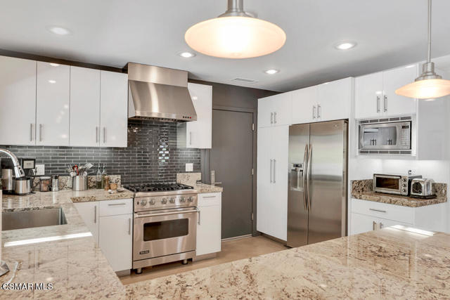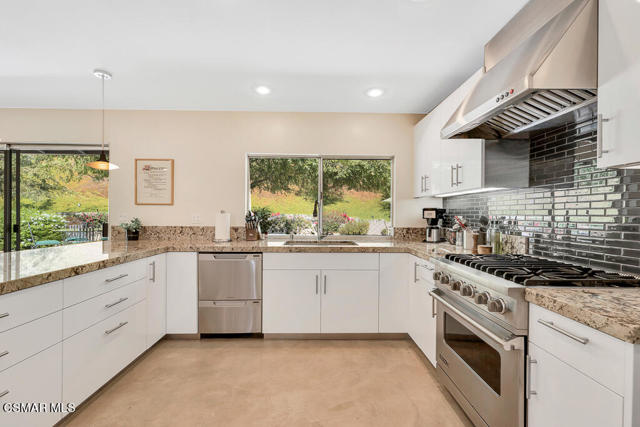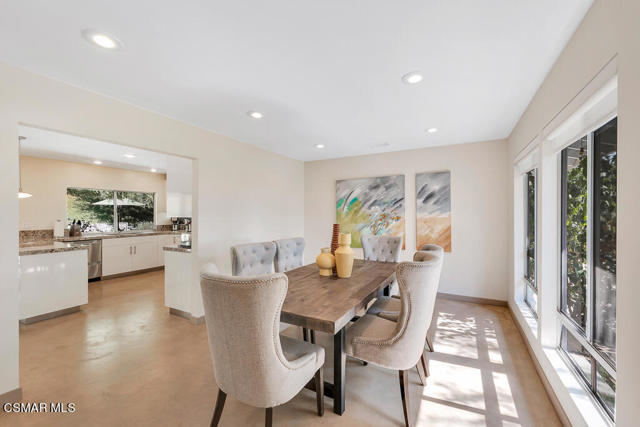 Stunning Mid-Century Modern REIMAGINED!!! GORGEOUS REMODEL!! OPEN CONCEPT FLOORPLAN!! Light bright and airy!!! Skim coated smooth walls, Polished concrete floors, floor to ceiling windows, recessed LED lighting throughout!! This is truly a special home!! Custom reeded glass entry door leads to this open floorplan! Living room has mountain and valley views, as does the Primary Bedroom suite! The living room features a stone fireplace for those cozy cool evenings! The rear portion of the house is totally open concept with family room, formal dining room and open concept modern kitchen. Kitchen features slab stone counters, deep stainless steel Kraus farmhouse sink and faucet. Viking Commercial 4 burner range and oven, Fisher Paykel dishwasher and gorgeous sleek, modern slab door white cabinets with full extension drawers and soft close doors finished with brushed nickel hardware!! Loads of counter space, large pantry and peninsula with bar seating!! Large Formal dining room opens to kitchen and family room for today's casual entertaining lifestyle!! The Primary Suite features his and hers closets, Gorgeous floor to ceiling windows with Mountain and Valley Views. Private remodeled ensuite bathroom with oversized shower with Rain head, Hand held wand and frameless glass enclosure, his and hers vanity and all Grohe faucets in all bathrooms! Two additional secondary bedrooms share a common remodeled bathroom and there is a separate powder room for guests. 2 car garage is extra deep for storage or work area. Fully drywalled and finished with high end epoxy floors. The house sits high above the street on a private knoll with total privacy in front and back. The rear yard has approx. 1,200 square feet of custom stamped concrete patio areas. Both front and rear yards feature drought tolerant landscaping and large shade trees in the rear. Other Notable features are a Tankless water heater with instant hot in all rooms, Toto Toilets, Grohe plumbing fixtures and Extensive use of LED recessing lighting. This house is upgraded and beautiful. Move in ready! Amust see home for the most discriminating buyer who wants views, privacy and a premium location in the prestigious Kevington Community in the Sought after Meadows Arts and Technology Elementary School District.Interested in this Listing?