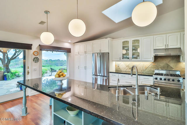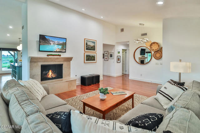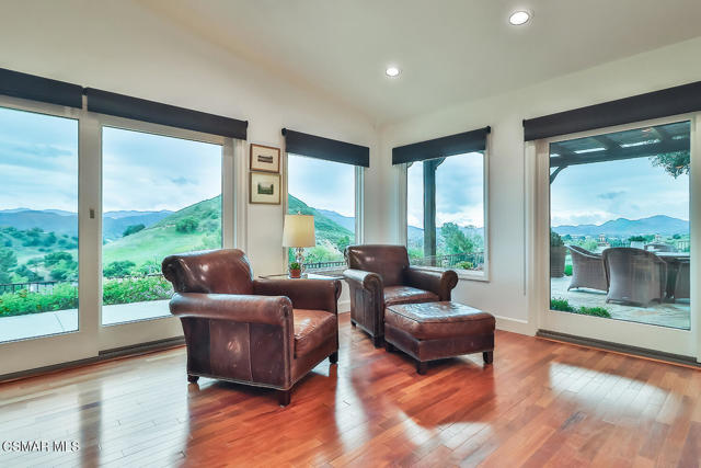 270 VIEW LOVERS Single-Story DREAM Home with END-of-Cul-de-Sac Location! Set on an EXPANSVE 10,018sf lot at the quiet end of a hill-top cul-de-sac, this UPGRADED home offers over 3,000sq ft of light-filled living space, dramatic architectural flair, and absolutely BREATHTAKING panoramic views which stretch from treetop canopies to the snow-capped mountains beyond Wildwood Park. Thoughtfully upgraded with quality finishes and timeless style, this single-story retreat blends indoor-outdoor living with comfort, space, and jaw-dropping scenery. The Entry sets the tone with abundant natural light, an OPEN & flowing layout, and warm MAHOGANY wood flooring that carries throughout the home. The Living Room is a SHOWSTOPPER - soaring vaulted ceilings, expansive windows with sweeping canyon & mountain views, and a cozy tile-faced gas fireplace make it the perfect space to relax or entertain. The GOURMET Kitchen has been thoroughly revamped to impress, featuring granite countertops, TONS of custom cabinetry, a pantry with pull-out shelving, and an IMMENSE center island with breakfast bar seating. A MASSIVE Bonus Room off the Kitchen makes an ideal media lounge or entertainer's hub--highlighting tall ceilings, TWO oversized skylights, and a MARBLE-clad fireplace. The backyard-facing Primary Bedroom is a true SANCTUARY with sliding glass doors to the view patio, a DEEP walk-in closet with custom built-ins, and a NEWLY & COMPLETELY remodeled primary bathroom that absolutely stuns with vaulted ceilings, a QUARTZ-topped dual-sink vanity, a revamped shower with soft-touch pebble shower flooring, and a CHIC standalone tub set beneath picture windows that frame the landscape like living artwork. Three Secondary Bedrooms provide great flexibility for family or guests and utilize the full Hall Bathroom which is beautifully upgraded with a quartz-topped vanity and tile-walled shower. But the true magic unfolds outdoors--this jaw-dropping backyard delivers 270 panoramic views of Tarantula Hill, the rolling Wildwood ridges, and even snow-dusted peaks in the distance. A covered stone patio & circular view deck provide multiple spots to soak in the sights, while a HANDSOME stacked-stone outdoor fireplace, lush lawns, and terraced planters add to the outdoor ambiance. Additional highlights include a NEW roof (Nov. 2016), Anderson windows, an association POOL, WALKABILITY to Aspen Elementary, Redwood middle school, the exclusive Carden Elementary and CLOSE proximity to Thousand Oaks High School, Los Robles Hospital, the AMGEN campus, CLU, Sprouts Farmers Market, and the WILDWOOD hiking & biking trails, tennis courts, and playgrounds!Interested in this Listing?