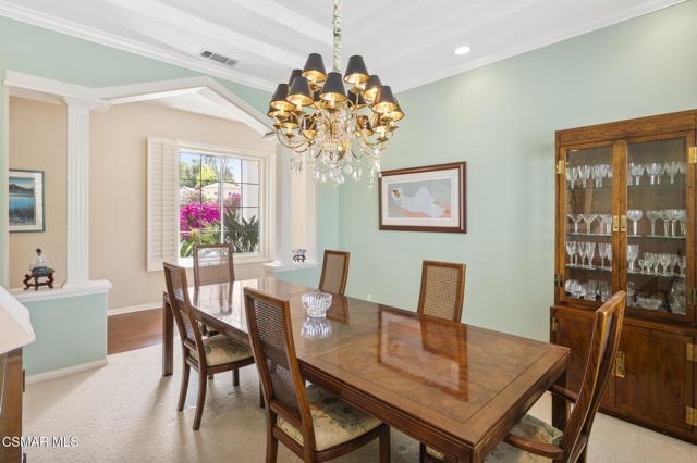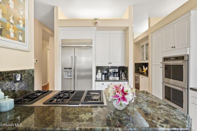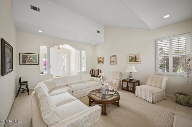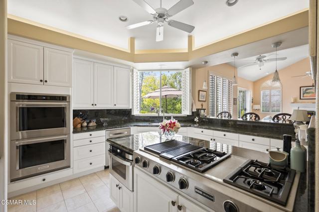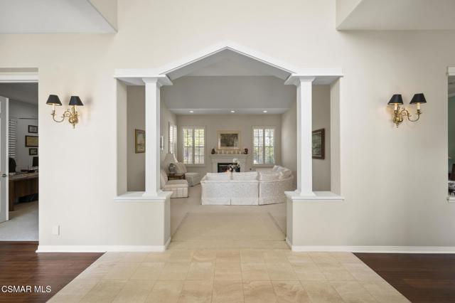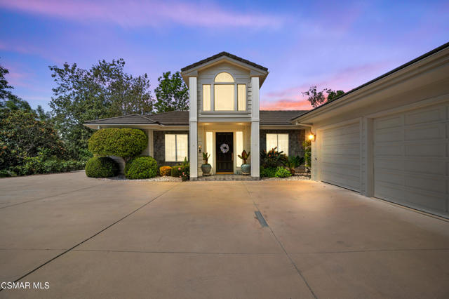 Tucked away from the street down a long driveway lies this beautiful Pleasant Oaks Estates home - a cherished single-story treasure on the market for the first time in almost 30 years. Lovingly maintained and reflecting a true pride of ownership, this home offers a unique feeling of being in the islands with its tranquil soothing tones, birds of paradise, tropical trees and incredible sunset skies! With its prime location backing Conejo Oaks and in the MATES Elementary School footprint, this home is a must have! Upon entry, you're immediately captivated by soaring ceilings, wide hallways, distinctive architectural details, charming niches and a peaceful warmth that fills this home. The gourmet kitchen boasts exquisite Italian granite, stainless steel appliances (which include a built-in refrigerator, double oven, range with a grill and a built-in microwave drawer), a walk-in pantry, a wet bar with a wine fridge, ample storage and a breakfast bar perfect for casual dining. The kitchen opens to the family room with an inviting fireplace (one of 3!), ceiling fans and an abundance of natural light and is next to the formal dining room featuring a tray ceiling adding to the home's casual elegance. As you retreat to your expansive primary suite through the grand double-door entry, you're greeted by a romantic fireplace, views of the gorgeous evening sky, a spacious oversized walk-in closet and a large bathroom with dual sinks, a jetted soaking tub and a stand-alone shower. This wing also includes two secondary bedrooms, a full shared bathroom with dual sinks, a powder room, an indoor laundry room with storage and a utility sink and direct access to the attached three car garage. On the opposite side of the residence, you'll find the formal living room offering a cozy fireplace, and a fourth bedroom and three-quarter bathroom, perfect for multi-generational living! The large wrap-around lush yard features a firepit and hot tub, the perfect scene for enjoying stunning sunsets, gathering with friends and family or unwinding at the end of the day. A private patio off of the primary suite also awaits, an ideal location for your morning cup of coffee, meditation or serene escape to begin your day. Additional highlights of this wonderful home include Plantation shutters throughout, generously sized rooms and ceiling fans in all bedrooms. Nearby award-winning schools, parks, trails, teen and adult centers, the library, shopping, dining and entertainment makes this lovely home a true gem!Interested in this Listing?