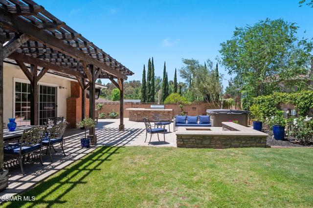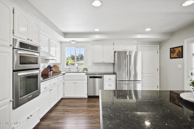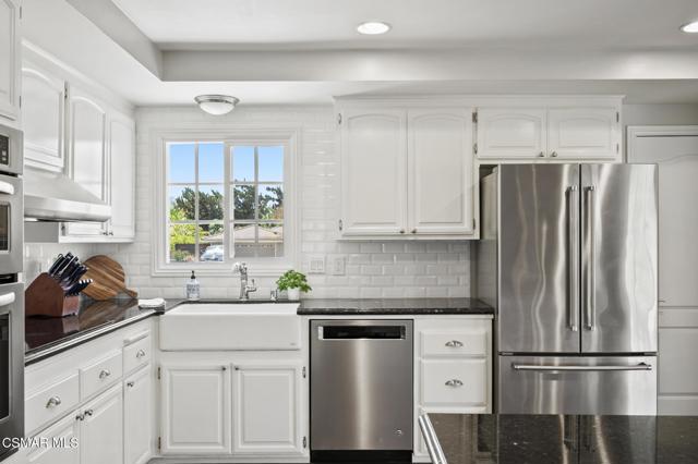 This charming single-story home (nestled on a desirable cul-de-sac) offers a warm, inviting ambiance sparking love at first sight! Truly turn-key, this home gives all the ''feels'' welcoming you with soothing colors, radiant, natural light and views of the alluring, private yard. The living space is the heart of the home with an open concept kitchen that seamlessly connects to the formal dining area and living room. The classic, stylish kitchen boasts stainless steel appliances, granite countertops, a farmhouse sink, a chic subway tile backsplash and a large island with a breakfast bar that overlooks the great room - highlighted by a cozy, romantic gas brick fireplace. Embrace easy indoor - outdoor living with sliding glass doors leading to the side and rear yards - perfect for al fresco dining, comfortable, everyday enjoyment and flawless entertaining! The primary retreat offers dual closets, a ceiling fan, newer indulgent carpeting and a remodeled, casually elegant bathroom with dual sinks and a stand alone shower. Two additional generously sized bedrooms also feature ceiling fans and the same newer carpeting. The fourth bedroom is currently being used as an office. The gorgeous updated shared bathroom similarly offers dual sinks and timeless style. Outside, discover multiple gathering areas including a focal gas firepit, two covered patios, a pool-sized lawn, lush landscaping, a built-in BBQ station and an above-ground spa, ideal for basking in the quintessential SoCal lifestyle complete with unbelievably captivating sunset skies! Additional highlights include beautiful and durable luxury vinyl floors throughout, a direct access attached two-car garage with epoxy flooring, tons of storage cabinets and drop-down entry reinforced attic storage, a newer HVAC system, newer washer and dryer, Plantation shutters, recessed lighting and ceiling fans in all bedrooms. Award-winning schools (including residence priority in the lottery system for the highly coveted MATES Elementary School!) and its proximity to nearby parks, trails, the library, teen & senior centers, shopping, dining and entertainment make this special home a true MUST HAVE!