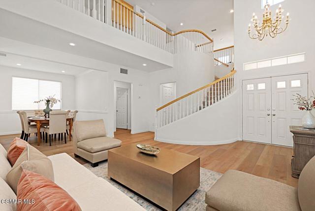Located in the highly sought-after guard-gated community of Rancho Conejo, this stunning 4-bedroom, 3-bathroom home plus loft offers 2,465 sq. ft of thoughtfully designed living space. From the moment you arrive, you'll be captivated by the home's excellent curb appeal, complete with low-maintenance turf in the front yard. Step inside to soaring high ceilings, a grand staircase, and a light, bright interior enhanced by modern wood-like flooring. The kitchen features crisp white cabinetry and flows seamlessly into the living areas, creating an ideal layout for both everyday living and entertaining. The main floor includes a bedroom and full bath, perfect for guests or multi-generational living. A laundry room with an oversized storage closet, with access to the attached 3 car garage. Enjoy a cozy evening by the fireplace in the inviting family room, and host dinner parties in the formal dining area. Upstairs, a versatile loft space offers endless possibilities--ideal for a home office, gym, or playroom. The additional upstairs bedrooms are generously sized, and the expansive primary suite serves as a true retreat, complete with a large walk-in closet, soaking tub, and separate shower. Step outside to a beautifully maintained backyard oasis, featuring a peaceful sitting area and a generous grassy lawn--perfect for enjoying the Southern California sunshine. Residents of Rancho Conejo enjoy access to two community pools and spas, 24-hour guarded security, and low HOA dues. All this, just minutes from top-rated schools, parks, shopping, dining, and convenient freeway access. Don't miss your chance to enjoy comfort, security, and lifestyle all in one amazing home!Interested in this Listing?