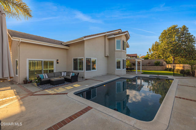 Discover an exquisite retreat where elegance and modern style converge in this immaculate two-story Lynnbrooke residence. With 4 spacious bedrooms and 2.5 lavishly appointed bathrooms, this home welcomes you with vaulted ceilings, dazzling natural light and open, airy rooms. A chef's delight, the kitchen is both functional and beautiful with solid wood cabinetry, including pull-out shelves, granite counters, stainless steel appliances, and the health benefits of a reverse osmosis water system. Breakfast is served in the charming nook, overlooking the spectacular back yard. The open-concept living spaces offer stylish gathering spots for friends and family, with the gorgeous formal dining room highlighting the perfect venues of this well-maintained home. You'll love entertaining in this magnificent property. Step outside to the picturesque backyard oasis, featuring a pristine pool and relaxing jacuzzi surrounded by lush tropical palms and expertly curated drought-tolerant landscaping. And at the end of the day, you can escape to your Primary Suite and spa like bath, with high-end finishes and LPV flooring. Nestled in a quiet cul-de-sac, this home offers a three-car garage, with abundant raised storage, an indoor laundry room and secondary bedrooms that are generous in size. The enchanting outdoor areas, including a covered patio adorned with twinkling cafe lights, provide a perfect setting for relaxation and outdoor dining. Live life luxuriously in this phenomenal home.Interested in this Listing?