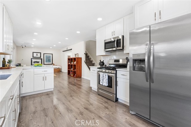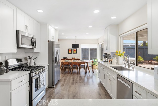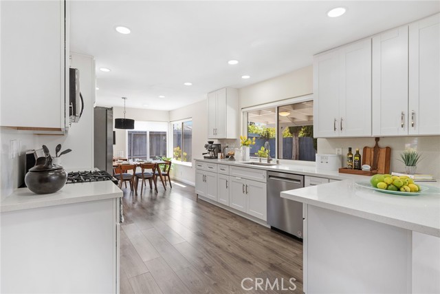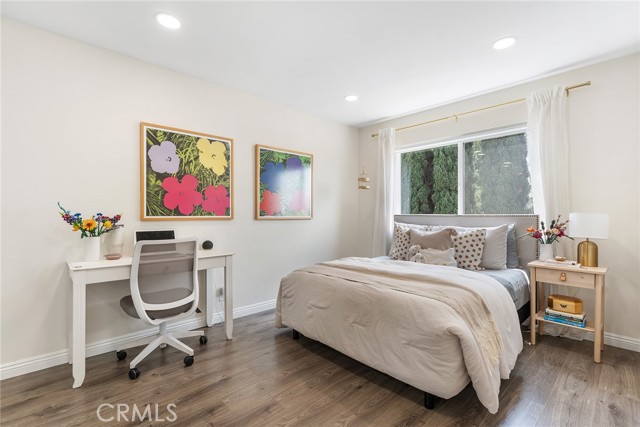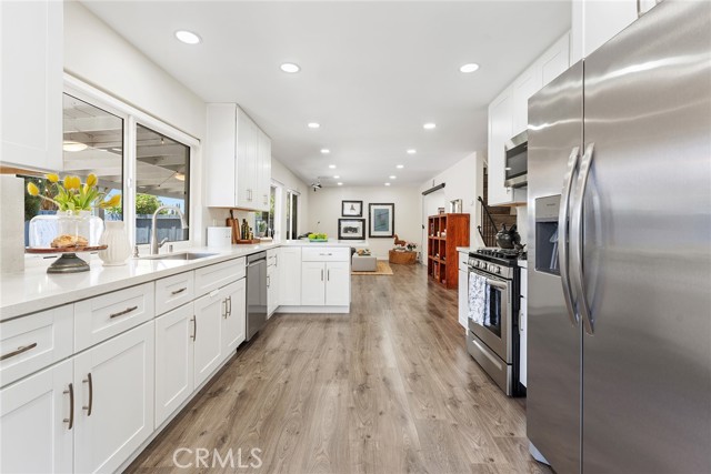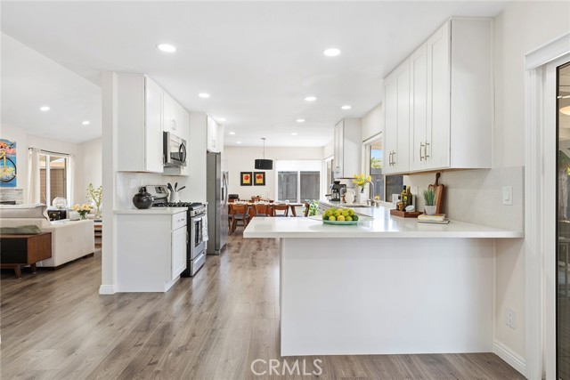 Welcome to this beautifully two-story ranch-style home located in one of Thousand Oaks' most desirable neighborhoods. This 4-bedroom, 2.5-bathroom residence offers approximately 2000 sq ft of living space on a generously sized lot, blending comfort, style, and functionality in a prime location. As you step inside, you're greeted by vaulted ceilings, newer vinyl flooring throughout, and an abundance of natural light. The living room features a charming fireplace, creating a warm and inviting atmosphere. The open-concept design seamlessly connects the kitchen, dining area, and family room, making it ideal for entertaining or relaxed everyday living. The gourmet kitchen is the heart of the home, featuring quartz countertops, soft-close cabinetry, stainless steel appliances, a large peninsula with bar seating, and ample storage space. Enjoy serene views of the lush backyard and new deck right from the kitchen and family room. The spacious primary suite is located upstairs and features wall-to-wall closets, sweeping views, and an updated spa-like en-suite bathroom with a custom walk-in shower, modern vanity, and high-end finishes. The additional three bedrooms offer great flexibility for a growing family, home office, or guest accommodations, and share a fully updated hall bathroom. Home highlights include: Copper plumbing, updated electrical, recessed LED lighting, energy-efficient vinyl windows, new deck ideal for outdoor dining and entertaining, attached 2-car garage with direct access. The front and backyards have been thoughtfully landscaped with low-maintenance desert-inspired plants, perfect for water-conscious living. Located within walking distance to Oakbrook Park, and minutes from Gelson s Market, Lang Ranch Elementary, Los Cerritos Middle School, dining, shopping, and trails. This turn-key property offers both luxury and practicality in a peaceful suburban setting. Don t miss your chance to call this Thousand Oaks gem your new home!Interested in this Listing?