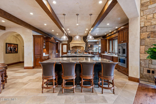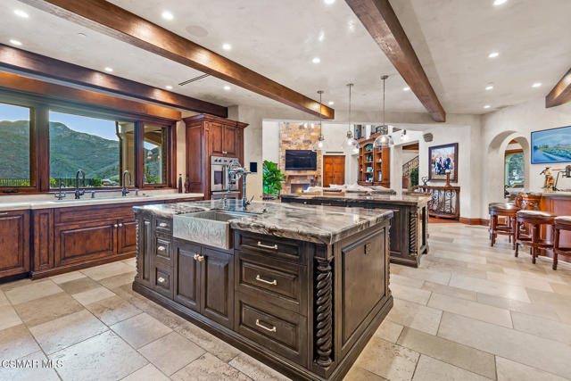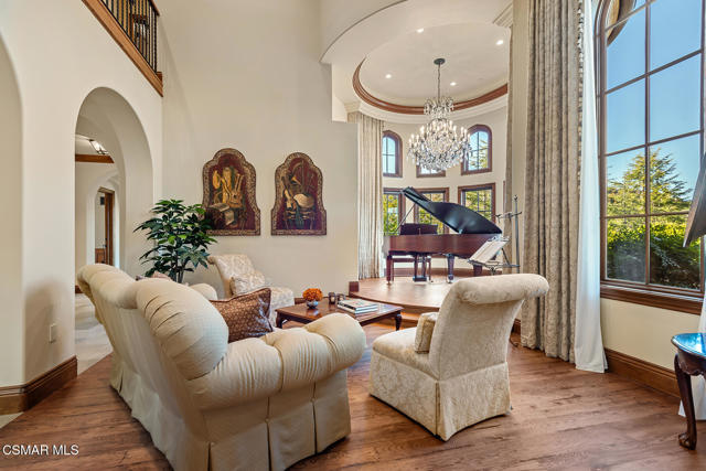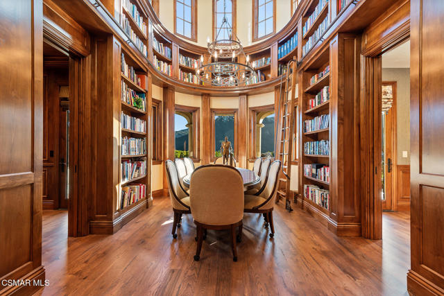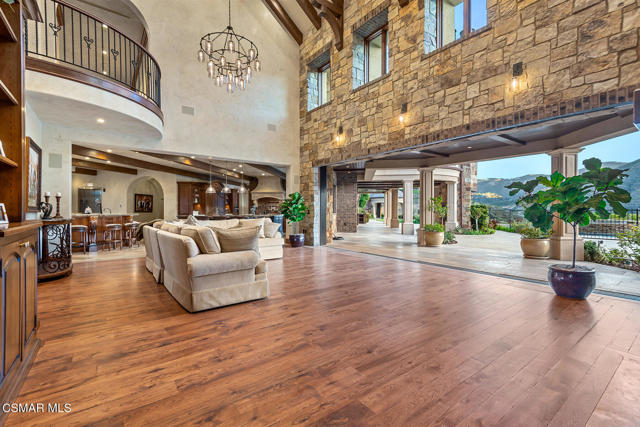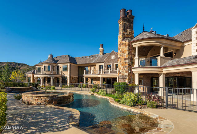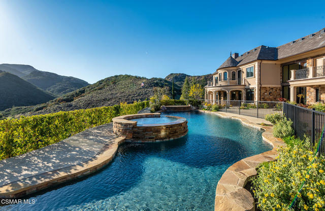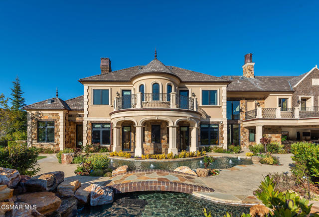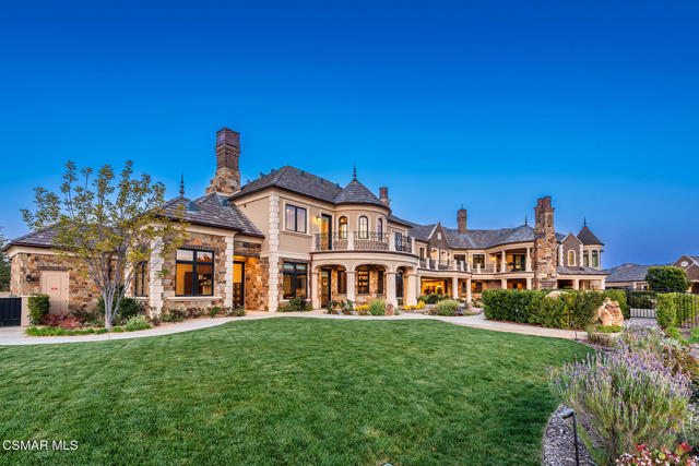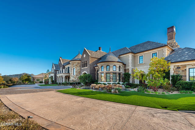 The ultimate Trophy estate in guard gated Lake Sherwood! A world class English castle professionally designed and masterfully built with the very finest finishes rarely seen anywhere. Ideally perched on a sensational 5 acre parcel boasting unmatched and unobstructed 360 degree views with complete privacy! Set behind its own gated entry with private guard house, you will travel up a long driveway reaching one of Southern California's finest estates. The main residence spans 13,055 square feet and there is a beautiful 2 bedroom 2 bath self contained guest house with1,200 square feet incorporating a total of 14,255 square feet of livability. Features include a 13 seat professional theater with snack room, two stately home offices which bookend a dramatic two story library/conference room, game/bonus room, unique music room, wine cellar and tasting area, large gym and too much more to mention. The jaw dropping double island kitchen opens seamlessly to one of the most magnificent ''great rooms'' imaginable. There are 5 large en-suite bedrooms including the primary suite that will leave you speechless. This is a very special home providing some important and thoughtfully used amenities rarely seen including a commercial Otis Elevator AND a residential hydraulic elevator, hand cut imported stone accents, automated pocket doors, incredible wood beamed ceilings and much more. The grounds are simply sensational with beach entry pool and spa, tremendous covered patios, fireplace, grand outdoor kitchen, cascading water features and massive manicured lawns all with panoramic views and privacy. Other amenities include the ultimate solar arrays featuring 3 battery back ups and three generators, top of the line smart home systems, 4 laundry rooms, garages for 5 cars PLUS a full sized RV garage, huge motor court and circular driveway and so much more. This true masterpiece took years to build on one of the best and most private lots in California's premier Golf Course community! A very rare offering!Interested in this Listing?
