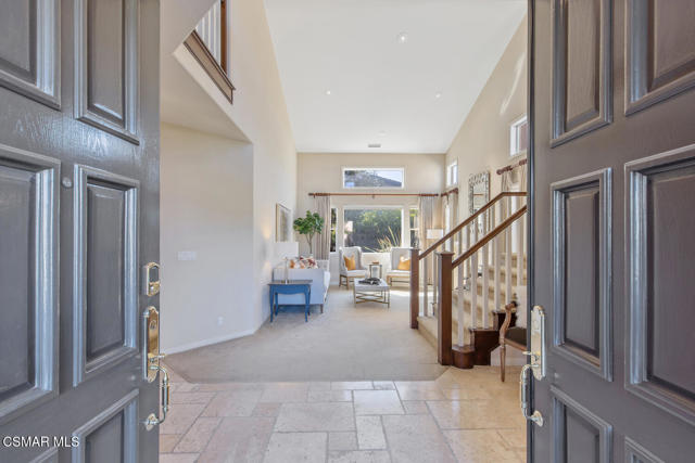 Tranquil living in Lang Ranch w/ mountain views and versatile floorplan! Discover your dream home in the highly sought-after neighborhood! Downstairs bedroom with en-suite bath, ideal for guests or multi-generational living. Additional downstairs powder room for convenience. Kitchen boasts an island, casual dining area or dine in the formal dining room w/ butlers pantry. Primary bedroom w/ private balcony, dual sinks, a soaking tub and a walk-in closet. Spacious secondary bedrooms plus a bonus room, perfect for a kid playroom, home office or ?? Finished three-car garage with a Tesla charger and built-in storage. Pool-sized yard, ready for your outdoor oasis! (pool renderings available upon request) Nestled in a prime location with a highly desirable school district, near a community park w/ basketball court and swing set. Also located near hiking trails, Gelson's, restaurants and freeway access. No HOA dues! This home offers the perfect blend of comfort, convenience, and natural beauty.Interested in this Listing?