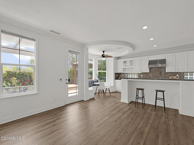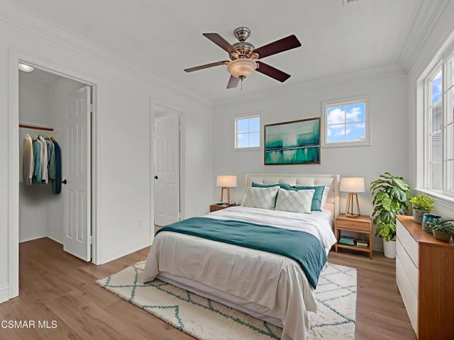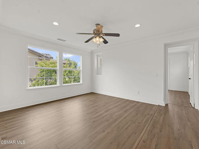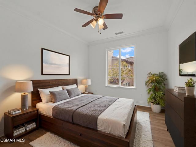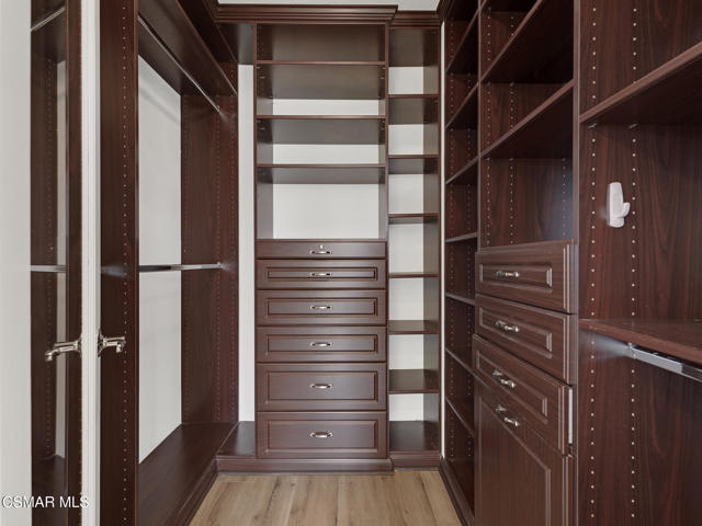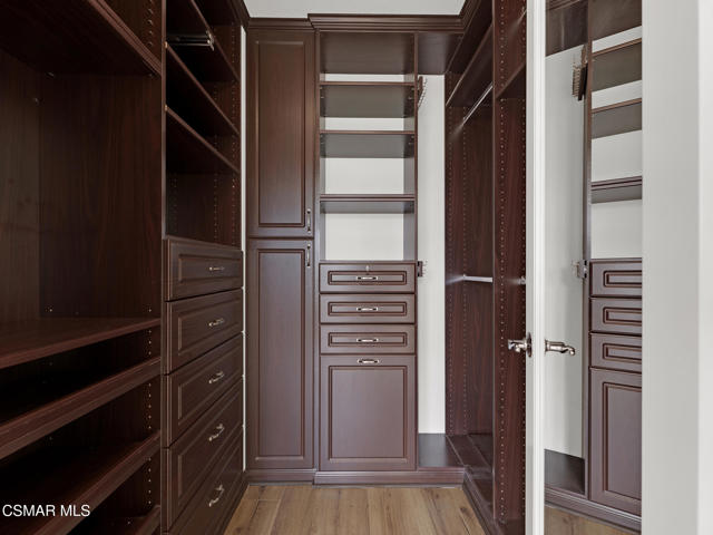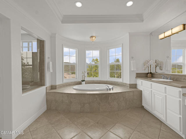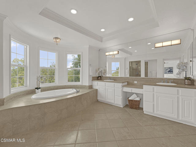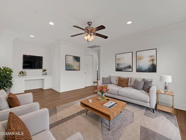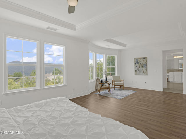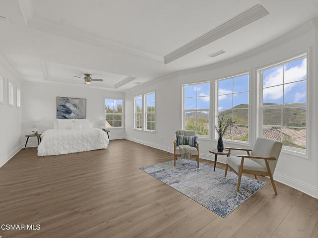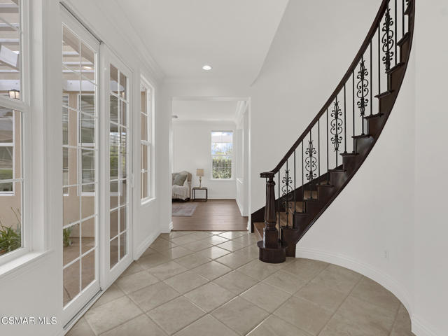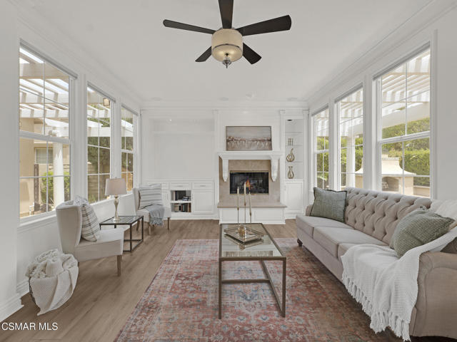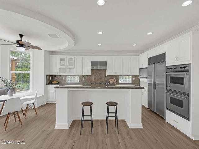 Elegant Mediterranean Estate with Pool, Wine Cellar & Hill Views in GUARD-GATED Woodridge Estates! Welcome to 3188 Eaglewood Avenue--a GRAND 5-bedroom, 4.5-bathroom, 4,100 sq ft estate nestled on a beautifully manicured 7,963 sq ft lot in the prestigious GUARD-GATED enclave of Woodridge Estates in Thousand Oaks! Built in 2003 and designed with sophistication, privacy, and entertaining in mind, this Mediterranean-style retreat blends luxurious finishes, flexible spaces, and serene outdoor living--backed by hillside views and minutes from top-tier amenities and open space trails. From the moment you arrive, the home makes a STUNNING first impression. Stacked-stone surfaced pillars, stamped concrete walkways, and lush green lawns frame the elegant facade. Step inside through the custom double entry doors--appointed with wrought iron detail & rain glass accents--into a DRAMATIC two-story foyer with mosaic tile inlay and a soaring chandelier that sets the tone for this stately residence. Just off the entry, the formal Living Room provides an elegant space to welcome guests, featuring a gas fireplace and views of the home's tranquil courtyard. This serene outdoor lounge includes a beautiful patio cover & stamped concrete floor, ready for outdoor dining/entertaining. The Family Room offers a cozy-yet-open media space with rustic stone fireplace, floating mantle, built-in media cabinetry, and backyard views. Open to the GOURMET Chef's Kitchen, it forms the heart of the home--perfect for hosting and gathering. The Kitchen dazzles with a large granite-topped center island with breakfast bar seating, extensive custom cabinetry, built-in Sub-Zero refrigerator, Viking Professional 6-burner gas range + double convection ovens, and a step-in pantry. A nearby Butler's Pantry with beverage fridge and granite-topped cabinetry leads into the formal Dining Room--finished with wood-like flooring, wainscoting, and lush backyard views. A charming Wine Cellar with arched wrought iron door and built-in racks rounds out the main entertaining level. The versatile floorplan offers a true downstairs guest suite featuring a bedroom with Murphy bed, built-ins, plus an en-suite 3/4 bathroom with granite vanity and tiled shower. Upstairs, a large open Loft/Bonus Room functions beautifully as a gym, media room, playroom, or study--complete with built-in desk. The spacious upstairs Primary Suite enjoys its own private wing, with sitting area, tray ceilings, views of local hills via tall windows, a long closet, and a LUXURIOUS en-suite bathroom showcasing dual stone-topped vanities, a central makeup station, jetted soaking tub, tile shower, and TWO custom walk-in closets. Three additional upstairs bedrooms offer flexible configurations--two with walk-in closets and one with French doors to a private balcony with hills views. Two additional full bathrooms (including one en-suite) complete the upper level. The backyard is a PRIVATE retreat designed for both relaxation and recreation. Enjoy a sparkling PEBBLE-surfaced pool and spa, stamped concrete patios, built-in wood-burning fireplace, and a romantic wood deck with ORIENTAL GAZEBO. Lush plantings include mature trees, flowering vines, a fig tree, rose bushes, and vibrant grass lawns--all backdropped by serene hills. Other highlights include a dual-zone HVAC system, MILGARD dual-pane windows, AquaLink pool equipment, tall crown/base moldings throughout, and finished garages (2-car + single-car) which are directly accessible. Situated near acclaimed Conejo Valley schools, this home also enjoys close access to fantastic hiking trails in Wildwood Park & Lang Ranch, shopping centers, fine dining, and the 101/23 freeways for easy commuting. This is luxury Thousand Oaks living at its finest--gated, private, and packed with amenities!