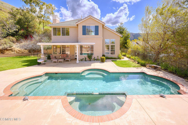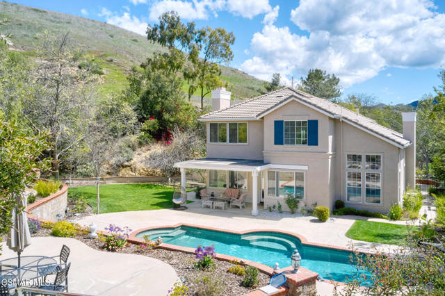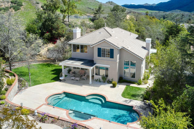 Enjoy amazing views from this gorgeous one-of-a-kind Lang Ranch property. As you drive up the long gated driveway with possible RV parking, you know you have arrived somewhere special. The home is situated on the largest lot in the Oak Creek Lang Ranch development. When you enter the home, you immediately notice the soaring ceilings, abundant light, and stunning views. The chef's kitchen has granite counters and stainless steel appliances. This 5 bedroom, 3 bath home features one bedroom and a full bath downstairs. The generous primary suite has spectacular views to the west, ample closet space, and a generous ensuite bathroom . The large three secondary bedrooms upstairs have gorgeous views. The entertainer's professionally landscaped yard features a pool, spa, and grassy play area. You can watch the sunset on the upper patio and enjoy fresh fruit from your fruit trees.This is your opportunity to live the California dream in your own private estate! The property backs to open space with easy access to hiking and biking trails.Interested in this Listing?