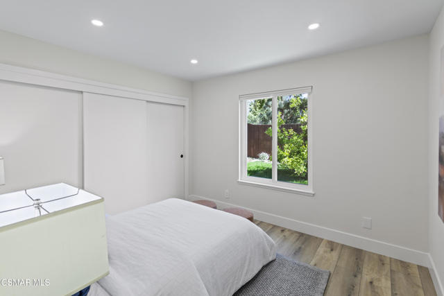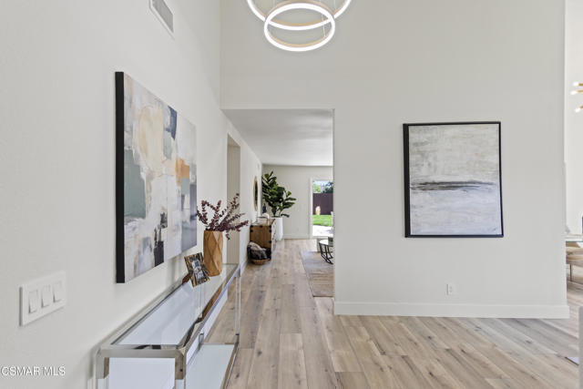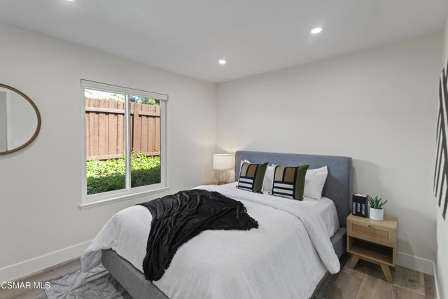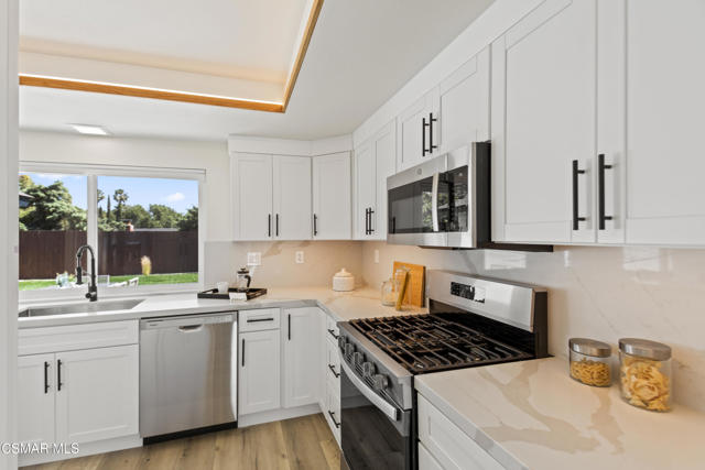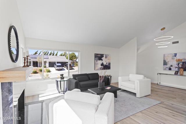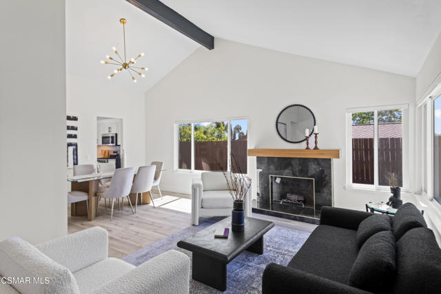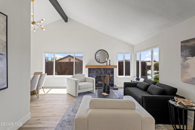Welcome to this beautifully reimagined single-story home with a prime location in the heart of Thousand Oaks! Thoughtfully redesigned from top to bottom, this unique gem blends modern style with everyday comfort, offering the feel of a brand-new home. Step inside to the bright living room with vaulted ceilings and a cozy fireplace that flows into the dining area. The family room opens to a modern kitchen featuring a custom wood-detailed peninsula illuminated by accent lighting, quartz countertops, brand-new cabinetry, stainless steel appliances, and serene views of the backyard and distant mountains. Outside, the private, tree-lined yard offers a peaceful escape, perfect for relaxing and enjoying the sound of the breeze through the trees. The spacious primary suite includes sliding glass door to the backyard, generous closets, and ensuite bathroom. All new Milgard dual-pane windows and sliders provide abundant natural light and a seamless indoor-outdoor flow. The garage has been upgraded with epoxy floors, drywall and paint, and new LG front-loading washer and dryer. Additional upgrades include fresh interior and exterior paint, recessed LED lighting, drought-tolerant landscaping with resort-style lighting, a new 200-amp electrical panel, a 40-gallon Bradford White water heater, and a powerful 4-ton Goodman furnace and AC condenser. And so much more! Top-rated CVUSD, close to schools, shopping, and Wildwood hiking. Expertly crafted by One Eleven Designs, this home is a one-of-a-kind treasure just waiting to be discovered!Interested in this Listing?