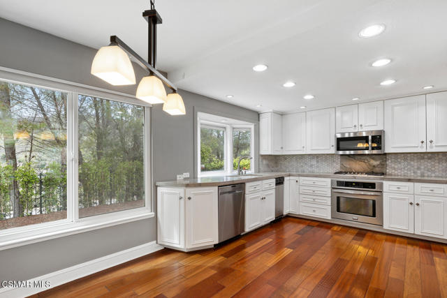 Against the backdrop of iconic Wildwood rock formations and set in a quiet neighborhood awaits 419 Thunderhead Street. This home boasts a 4 bedroom 3 bathroom, and 2,262 square foot layout with plenty of amenities. Walk in through the front door into the bright and open living room and dining room with soaring vaulted ceilings. The space, framed by oversized geometric picture windows bringing the outside view of the open space in. Discover your love for cooking in the well appointed remodeled kitchen, with elegant granite countertops, tiled backsplash and Viking appliances, illuminated by recessed lighting and softer countertop lights. Step down into the cozy family room to relax for movie night then retreat to the first floor spacious primary bedroom with an en-suite full bathroom and walk in closet. Step outside to the back yard living space, recently landscaped to provide ultimate privacy. Back inside, ascend the warm toned wood framed stairs with elegant iron accents to find the upstairs living space complete with 3 spacious bedrooms and 2 more full bathrooms. Ideally located in the heart of Wildwood this home is close to the beautiful Wildwood Park with scenic hiking trials featured in old Hollywood Westerns. With close access to the 101 corridor you are minutes to world class shopping, California Lutheran University, and Amgen.Interested in this Listing?