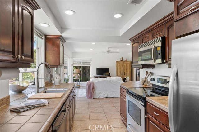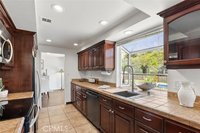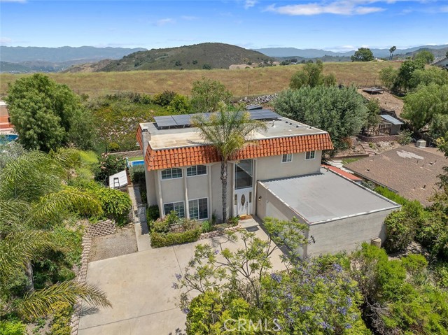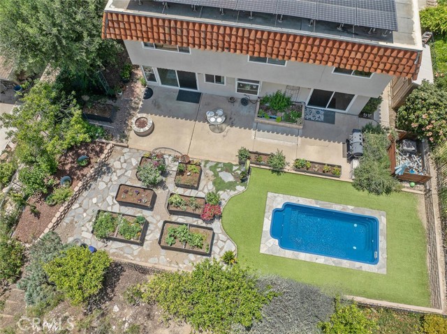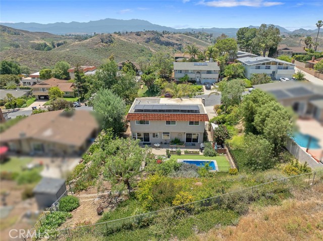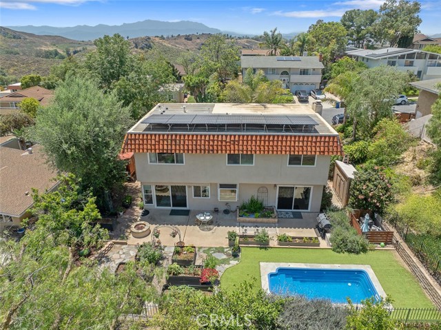 Welcome to this inviting 4 bedroom, 2.5 bathroom home with 2,236 sq. ft. of living space, perched on a spacious 12,039 sq. ft. lot in the serene Sunset Hills neighborhood of Thousand Oaks. Located at the top of a tranquil cul-de-sac, this home enjoys peaceful surroundings, open space views, and a true sense of privacy. Step inside to a bright and spacious living room featuring a cozy fireplace, perfect for relaxing evenings. The adjoining dining area opens to the backyard, making indoor-outdoor entertaining a breeze. The updated kitchen is as functional as it is charming, with rich wood cabinetry, custom tile countertops, stainless steel appliances, and abundant storage. A secondary sink and extended counter area create the ideal setup for a coffee station or wine service. The kitchen flows effortlessly into the family room, offering an open-concept feel that s perfect for gathering. There is a downstairs powder room and laundry room. Upstairs are four generously sized bedrooms, each with ample closet space. The primary suite includes its own private bath, and all rooms enjoy great natural light and views, thanks to newer dual-pane windows that enhance energy efficiency throughout the home. Another bonus, there s no carpet throughout the home, making it a great choice for those with allergies or anyone who prefers low-maintenance living. This home is thoughtfully designed for sustainable living. It features fully paid-off solar panels that power the home, the pool, and even charge your electric vehicle, helping reduce both your utility bills and environmental impact. Equipped with back-up batteries, the system keeps essentials running during power outages. And in case of emergency, the pool s filtered water is potable, offering added peace of mind. Outside, the private backyard is a peaceful retreat with fruit trees, garden boxes for growing your own produce, a chicken coop, and an oversized spa/spool for soaking under the stars. Additional highlights include a two-car garage . There is also an RV parking with 30 AMP plug and RV dump, which are bonuses in this area. If you re looking for a home that blends comfort, eco-conscious design, and a quiet yet convenient location, this Sunset Hills gem delivers it all.