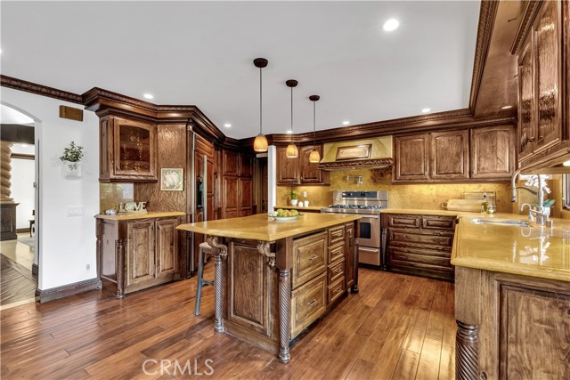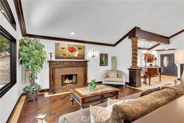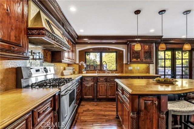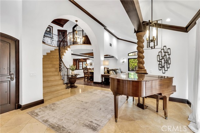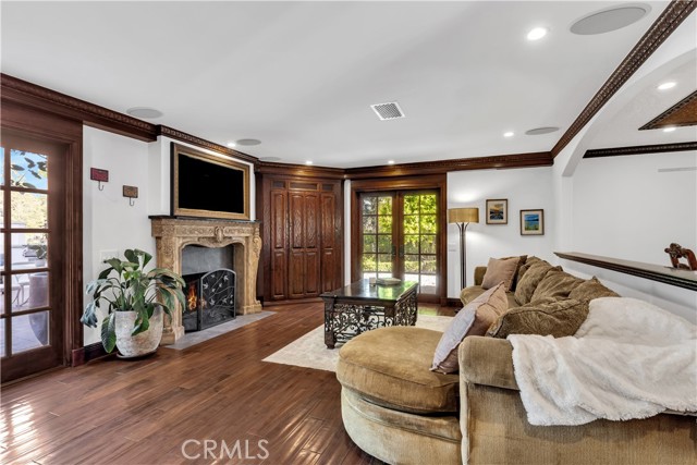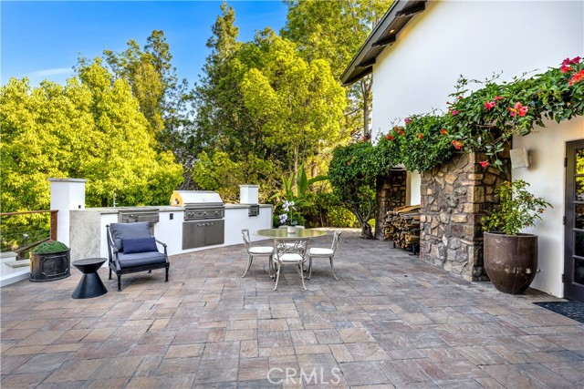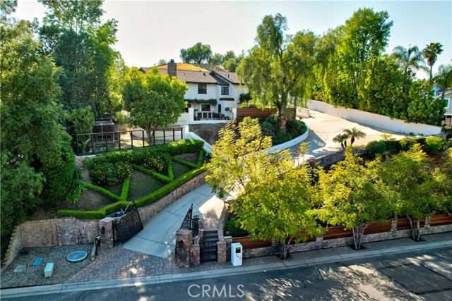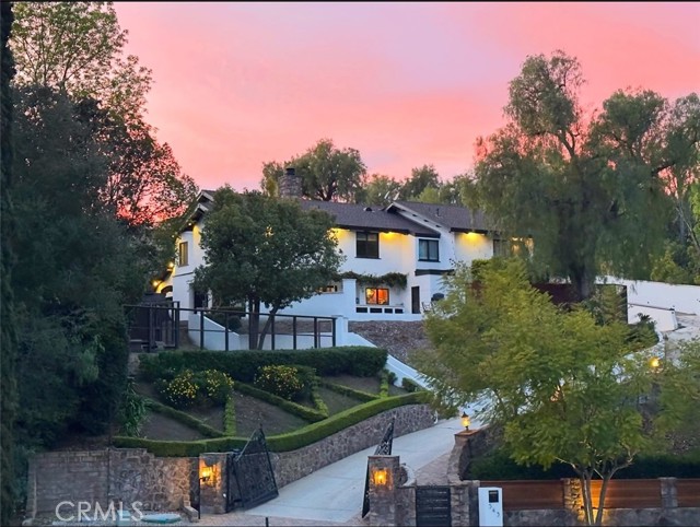 Set in the highly desired Equestrian Hills neighborhood, this stunning 4-bed + office + bonus room, 2.5-bath estate spans 3,047 square feet & sits on nearly 1 acre of gorgeous usable land. With amazing space for horses & an ADU, this one-of-a-kind property is brimming with character, elegance, & future potential. Blending timeless Spanish Revival architecture with modern luxury, the home welcomes you through custom double doors into a dramatic two-story foyer with a sweeping staircase. Warm walnut plank flooring & polished travertine flow through the living spaces, complemented by high-end designer lighting, custom paint treatments, & built-in audio throughout. All interior doors are solid 1 ¾ alder wood, & the entire home is fitted with dual-glazed alder wood windows & French doors for seamless indoor-outdoor flow. The expanded kitchen features custom alder wood cabinetry, slab onyx counters, & chef-grade appliances. Entertain in style with the custom wine closet off the dining room, & gather around either of the 2 fireplaces in the living & family rooms - each with bespoke mantels & surrounds. The downstairs office is finished with custom wainscoting, crown molding, & large windows that flood the space with natural light. The downstairs powder room is a showstopper in its own right, finished in Venetian plaster & a custom vanity. The primary suite is a true retreat with a cedar-lined walk-in closet & remote-controlled window coverings, plus a luxurious ensuite featuring heated floors, copper soaking tub, dual-head walk-in shower, quartzite trough sink & custom teak vanity & bench - all evoking a serene spa experience. The upstairs hall bath offers 2 separate custom vanities & an expansive walk-in storage closet. A bonus/theater room with Sonance speakers offers the perfect escape for movie nights or creative projects. Enjoy views of the hills & trees from the beautifully designed backyard, which includes custom paver hardscape, a built-in BBQ with Taj Mahal stone countertops & a fire pit. The expansive driveway offers parking for 6 or more vehicles & is bordered with stone pavers & designer landscape lighting. A 2nd driveway leads to the upper level of the property - perfect for a future ADU, horse corral, or private retreat area with even more breathtaking views. Just minutes from hiking & riding trails, shopping, dining, & freeway access - all within the highly rated Conejo Valley School District - this is more than just a home, this is a masterpiece!